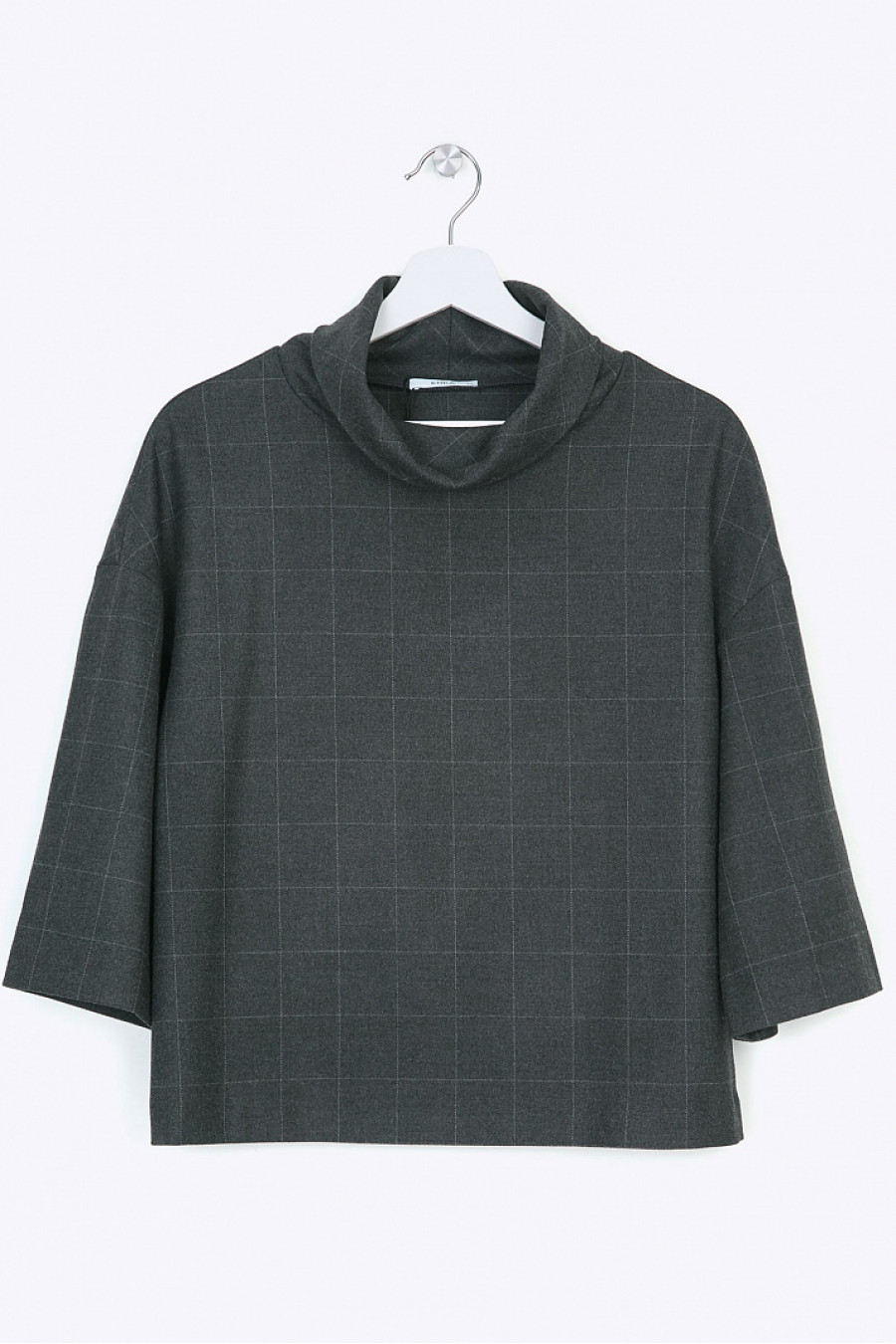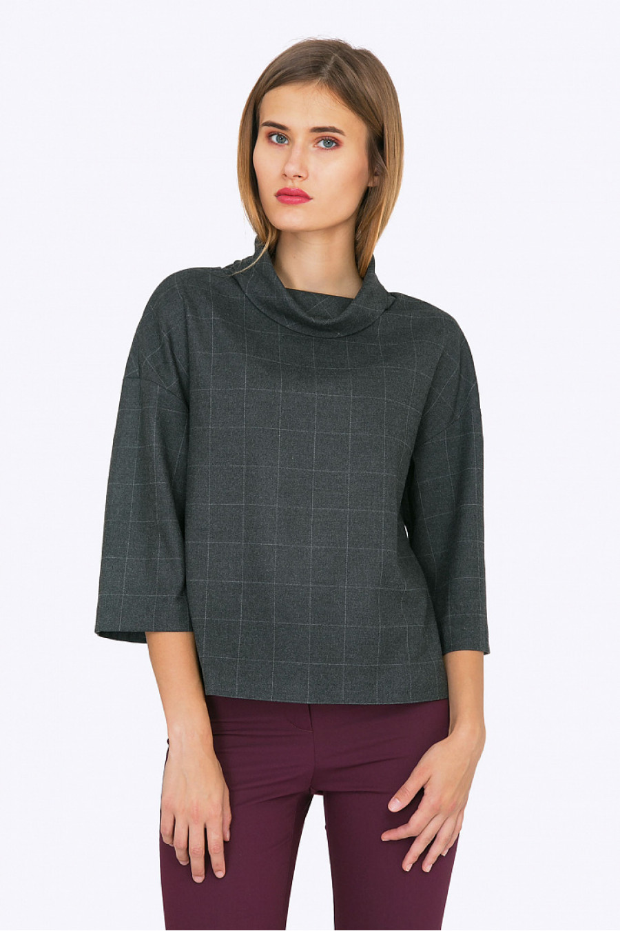 Блузка прямого кроя с воротником хомут. Ткань средней плотности, мягкая приятная на ощупь. Линия плеча на модели спущена. Блузка в стилеCasual прекрасно подойдет на каждый день. О Рост фотомодели 175 см.