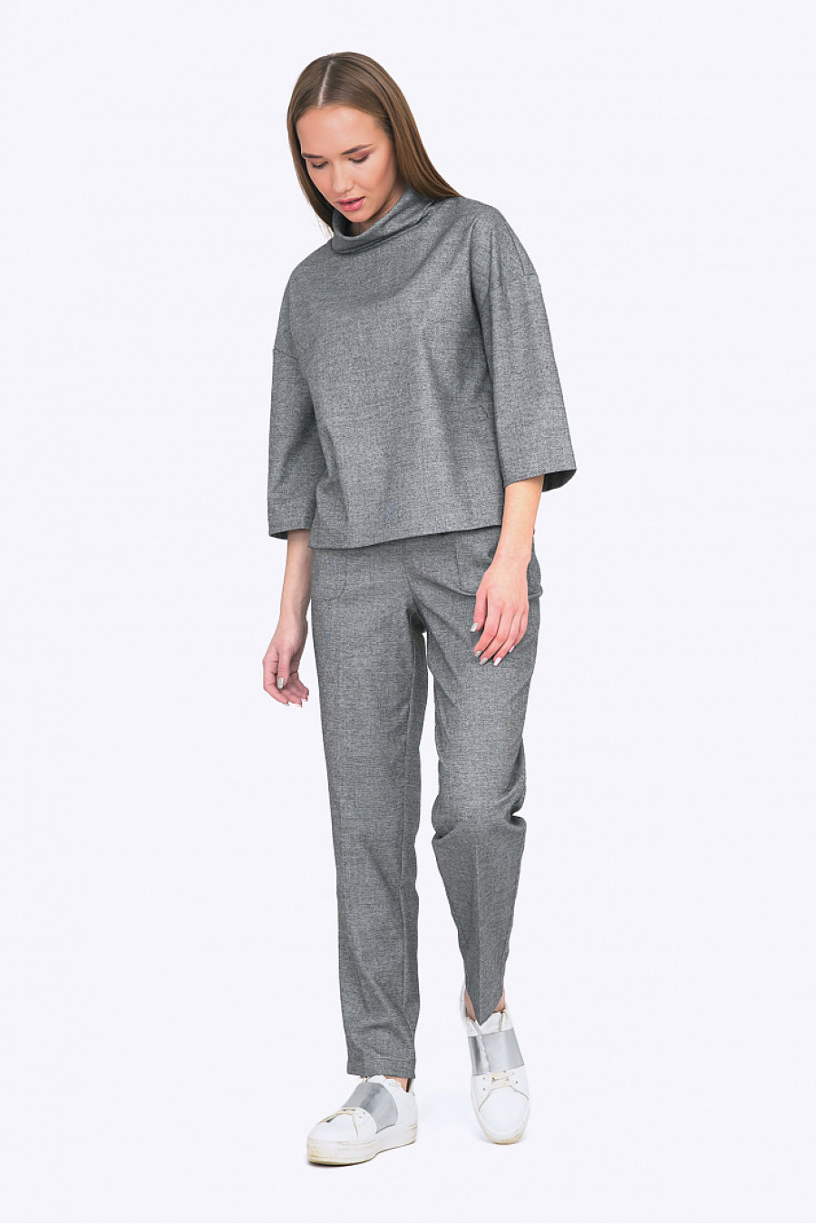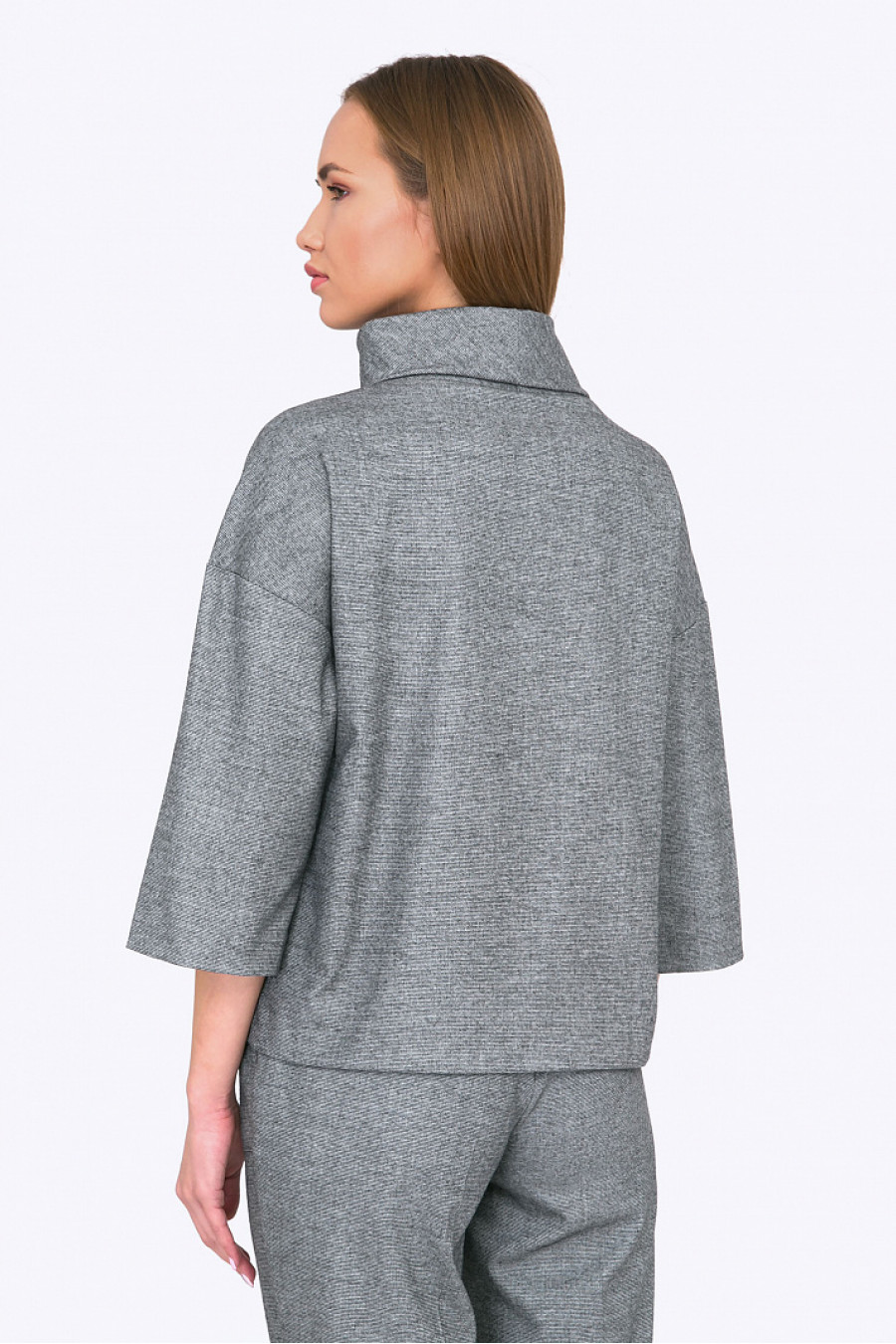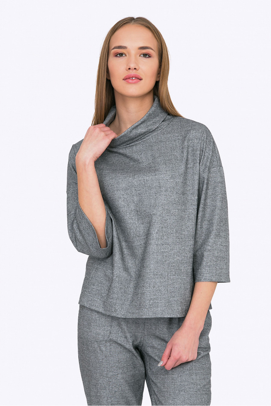 Минималистичный дизайн с легким намеком на японский стиль, приятный, благородный стальной оттенок двухниточной ткани, гармоничные линии воротника - стоечки и широкие рукава по локоть - не оставят равнодушными поклонниц восточной эстетики в моде. С подобными брюками в комплекте ( на фото) - получаем цельный образ для активного уик -энда или энергичной офисной жизни. С расклешенной юбкой-макси или черными брюками-трубами - собираем стильный стрит-look. Блуза будет хорошо смотреться на блондинках и шатенках. Свободная посадка подойдет любому типу фигуры. Мягкая смесовая ткань с содержанием вискозы приятна в носке и проста в уходе. Образ на фото дополнен Брюками D061-shafle. Рост фотомодели 174 см.