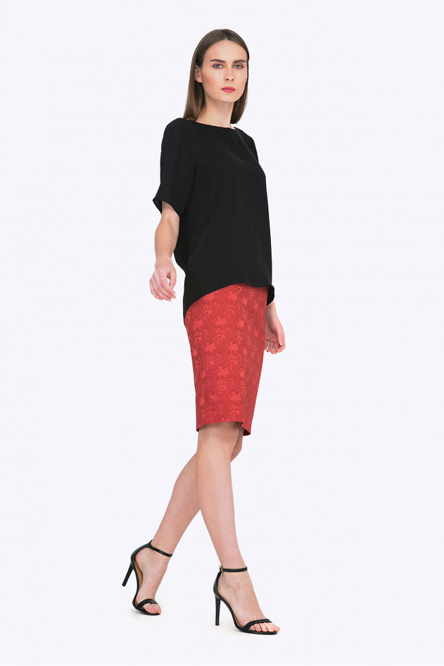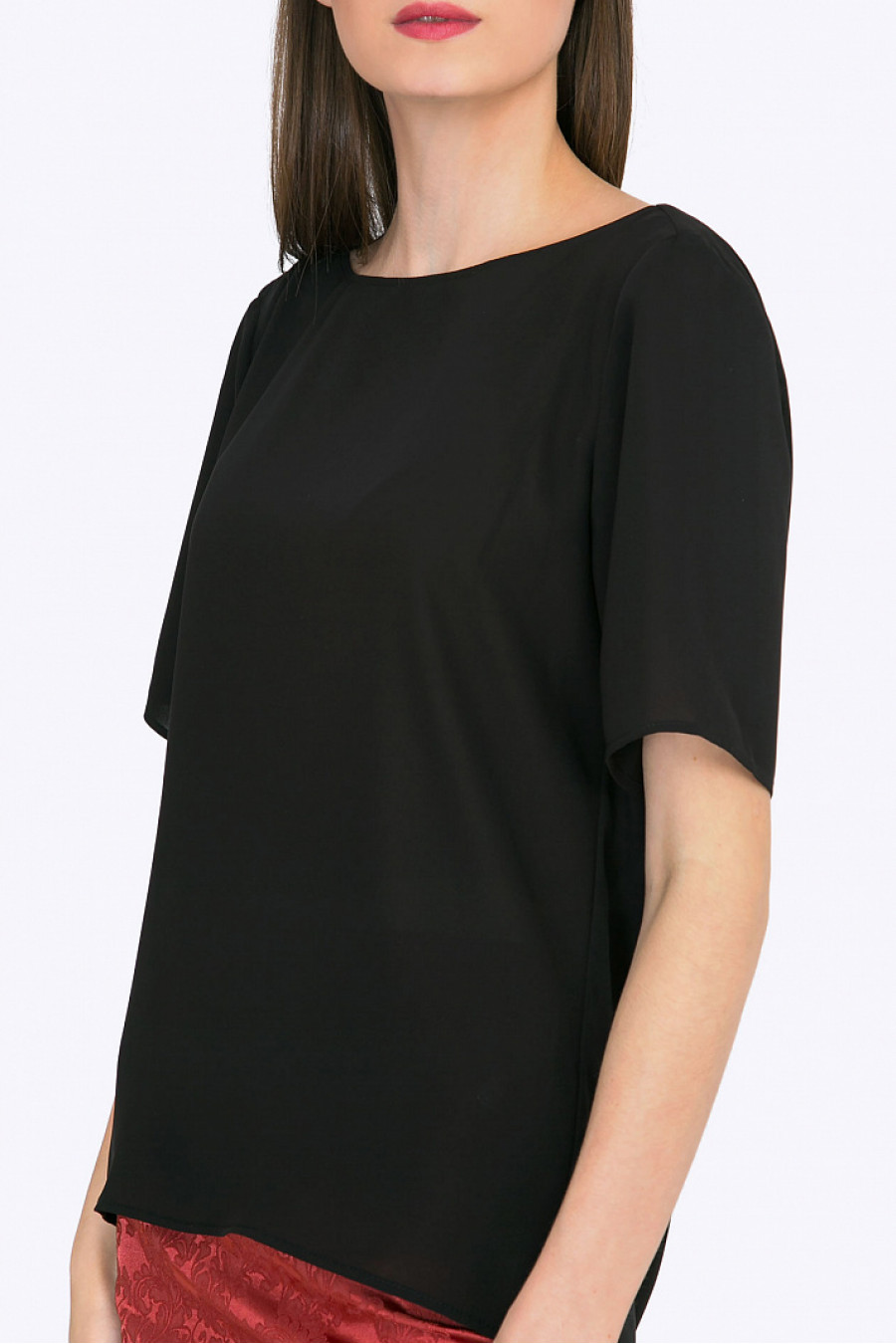 Нарядная блузка из шифона. Модель с драпировкой и декоративной цепочкой на спинке. Ткань легкая слегка просвечивает. Прекрасный выбор для праздничного мероприятия. Образ на фото дополнен Юбкой S663-demy.