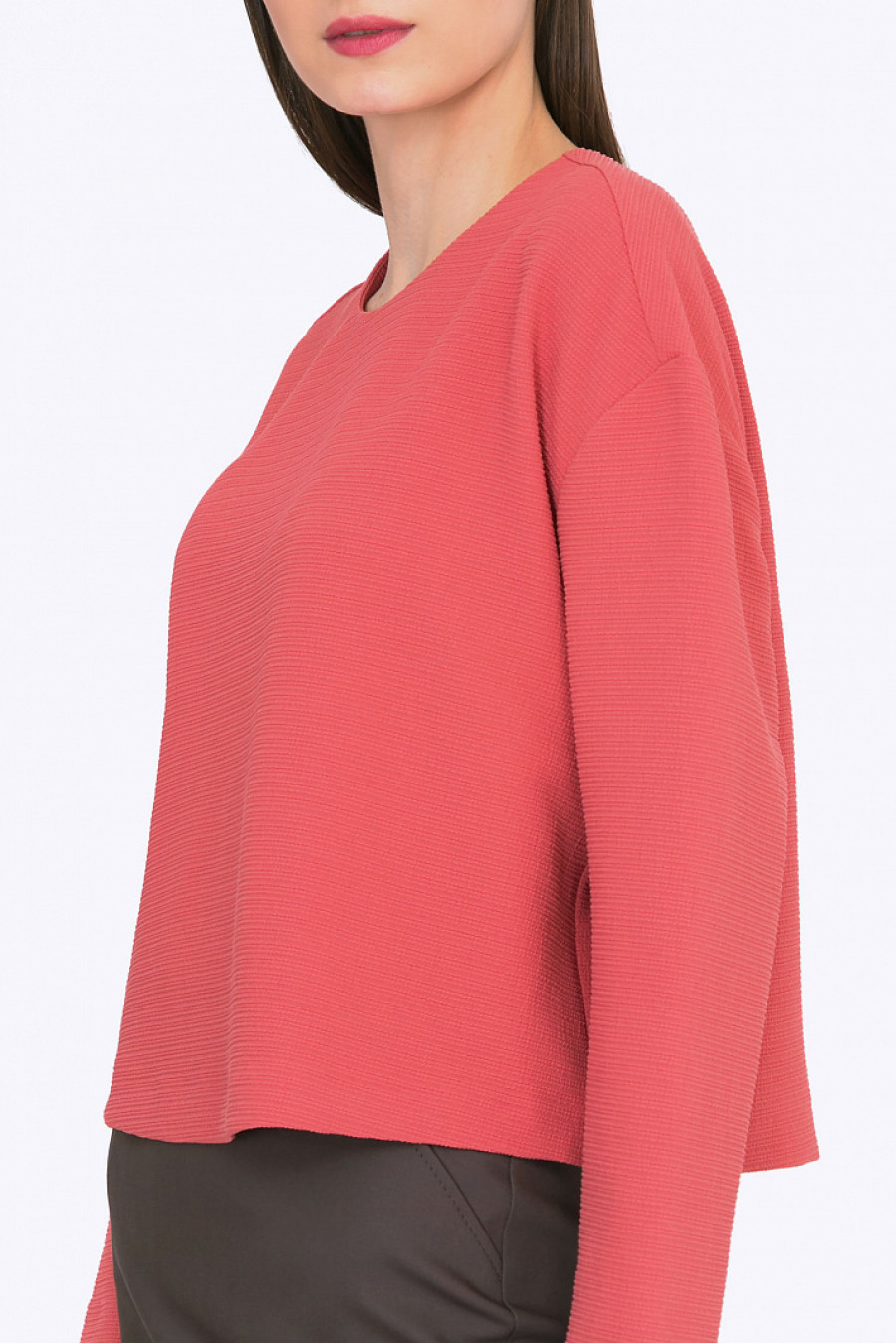 Укороченная блузка свободного кроя. Ткань структурная. Стильная модель на каждый день. Хорошо сочетается с брюками и юбками в стиле Casual. Рост фотомодели 177см.