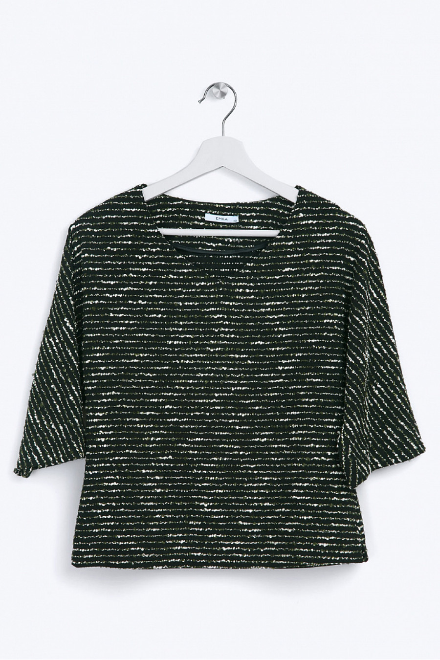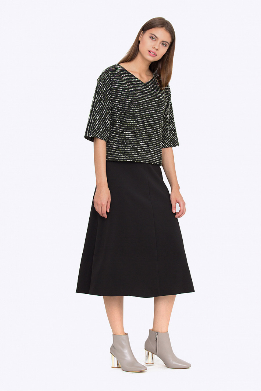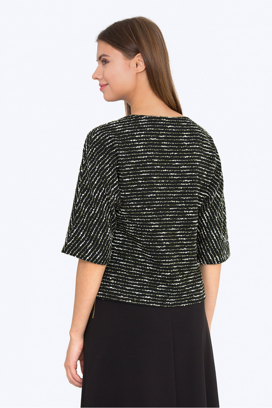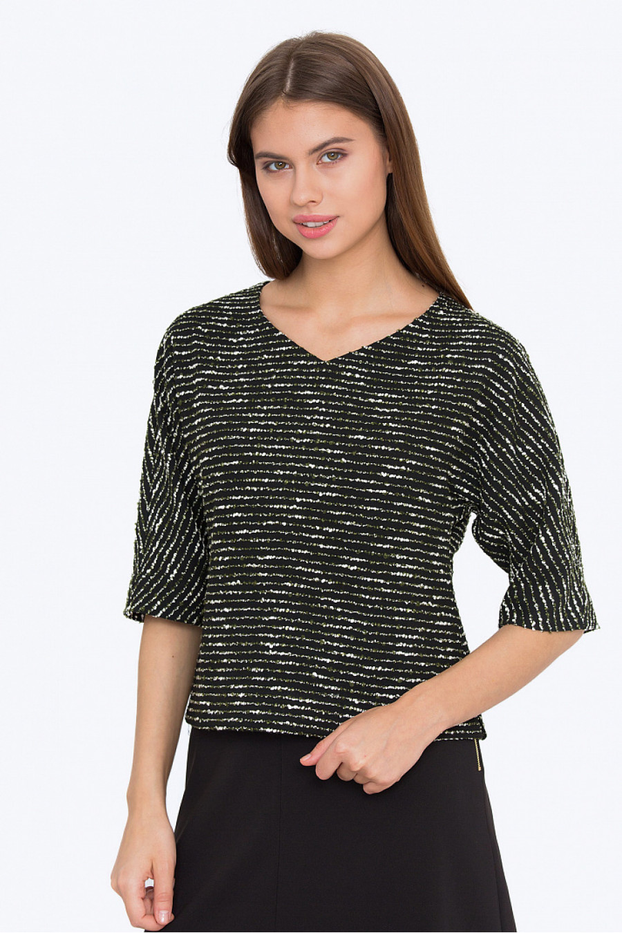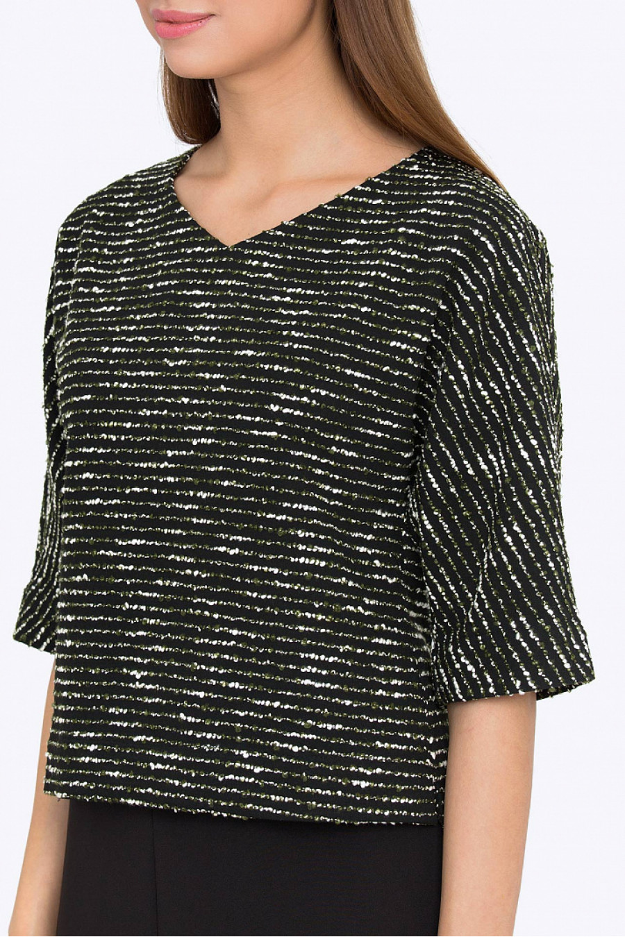 Укороченная блузка с цельнокроеным рукавом. Модель прямого кроя с V-образным вырезом горловины. Ткань мягкая. Стильная модель как для офиса, так и на каждый день. Рост фотомодели 172см.
