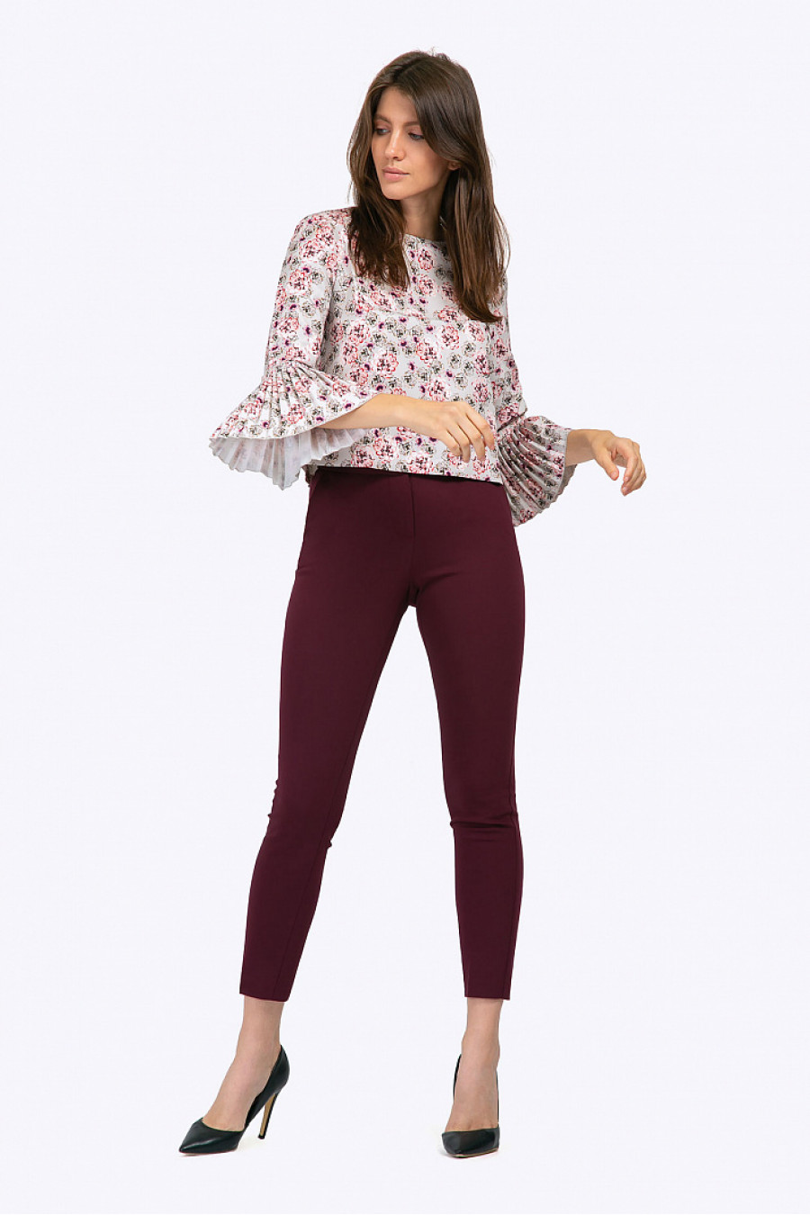 Нежная блуза с цветочным принтом - непременно привлечет внимание поклонниц индивидуального стиля. Гармоничный свободный крой, красивые линии выреза, плиссировка на рукавах- делают эту модель идеальной для создания выразительных женственных образов. С пастельных тонов юбкой-карандаш (на фото) - образуем выдержанный офисный look. Блуза отлично смотрится на фигурах любого типа, будет неотразима на золотоволосых и шатенках. Образ на фото дополнен брюками D090-somi . Рост фотомодели 177см.