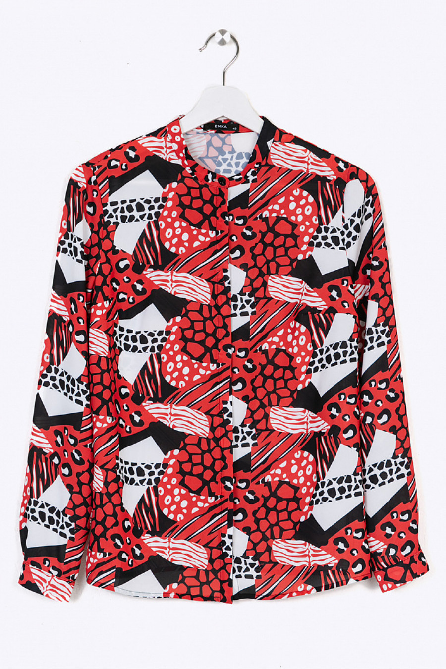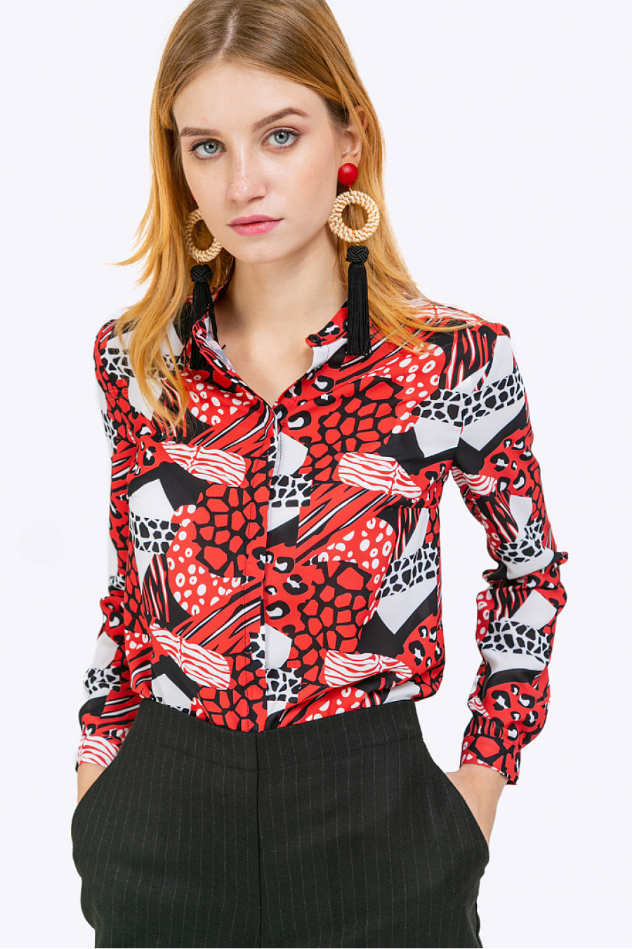 Блузка с ярким принтом. Модель прямого кроя без воротника,с длинными рукавами. Блузка хорошо сидит по фигуре. Подойдет для создания смелых образов.Рост фотомодели 176 см.