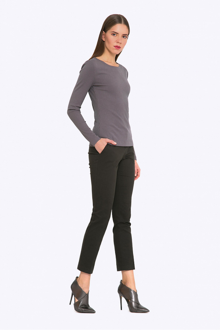 Современная блузка фасона водолазка без горлышка - отличное решение для создания универсальных комплектов одежды. Она пригодится как к офисным брюкам или юбкам классического стиля, так и к спортивному костюму. Используя, например, нарядный бархатный удлинненый жилет и юбку-макси из богатой ткани - можно получить неординарный вечерний образ. Благородный оттенок антрацит сделает look строгим и сдержанным, цвет прекрасно будет смотреться на брюнетках, шатенках. Мягкий трикотаж из смесовой ткани с содержанием вискозы приятен в носке и прост в уходе. Рост фотомодели 178 см.