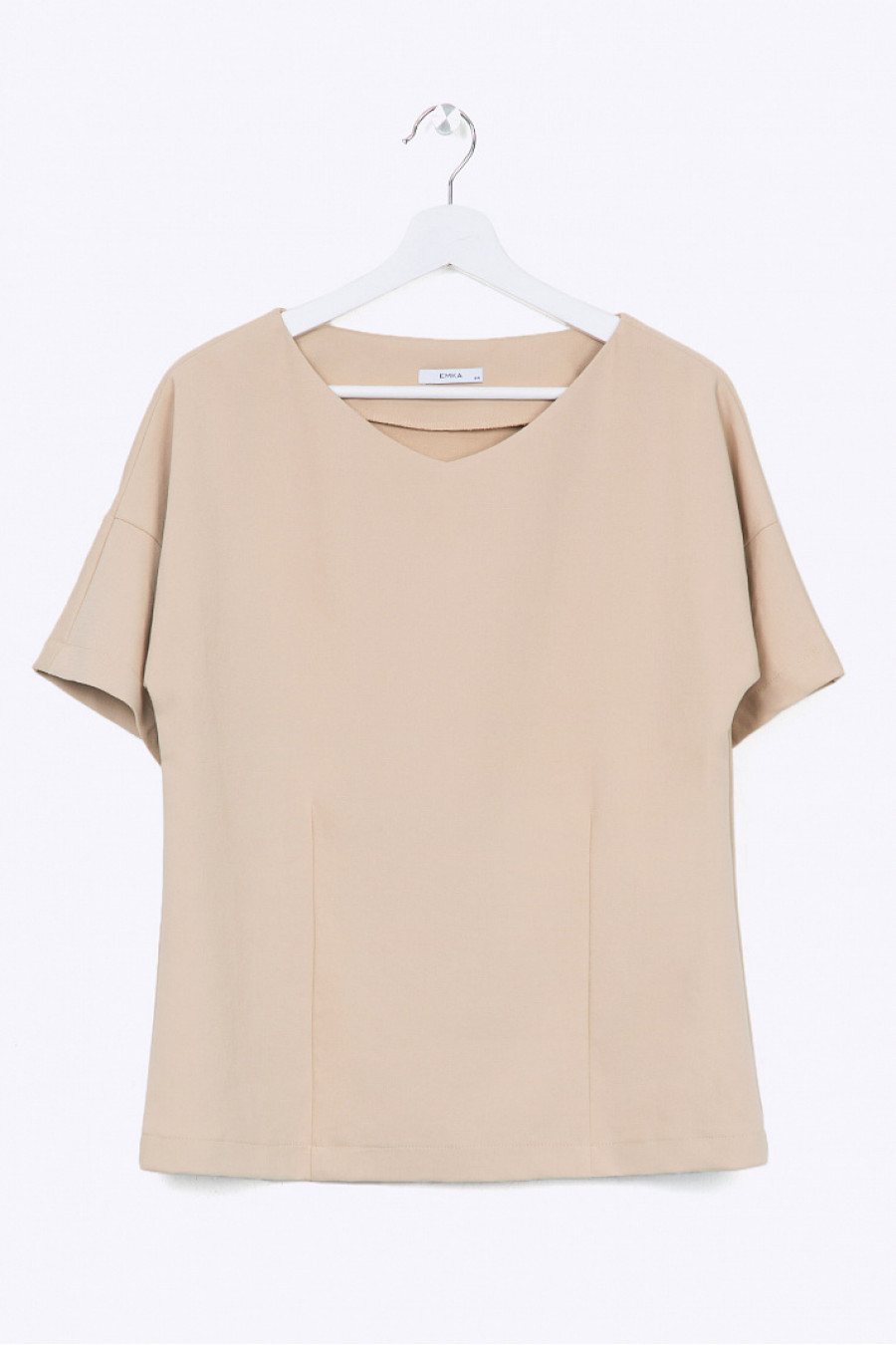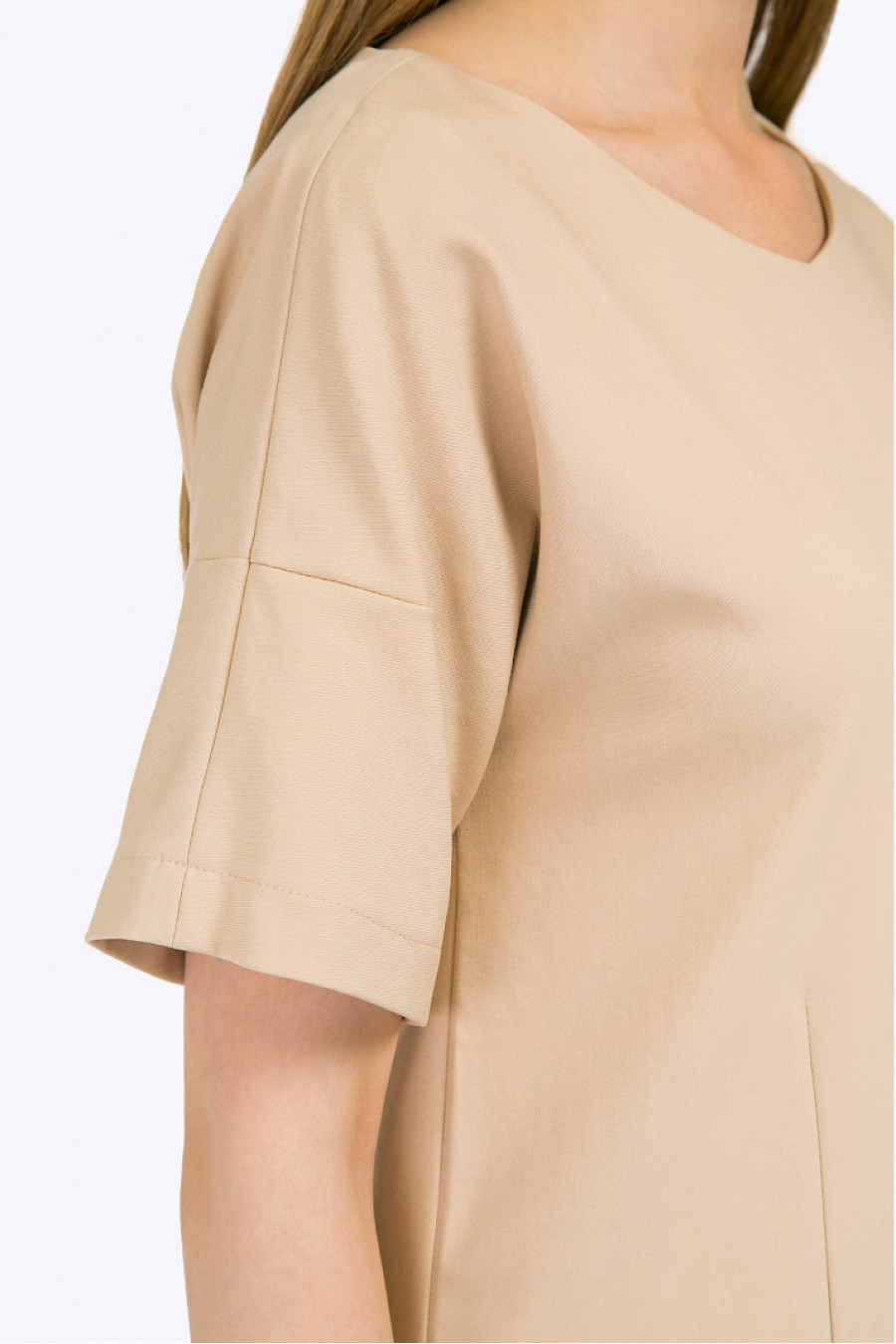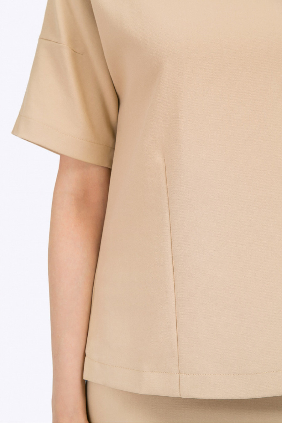 Лаконичная блузка прямого силуэта с короткими рукавами холодного бежевого оттенка. Модель имеет V-образный вырез горловины, спереди и сзади небольшие вертикальные вытачки. Рукава дополнены широкими манжетами. Спокойные линии и нейтральная цветовая гамма допускают любые цветовые сочетания при формировании образов в разнообразных стилях. Образ на фото дополнен Юбкой S667-sansara .Рост фотомодели 177 см.