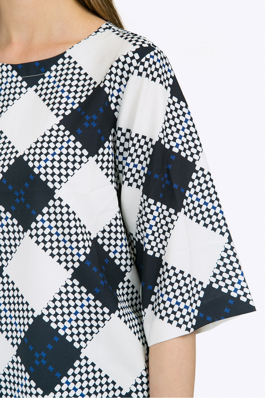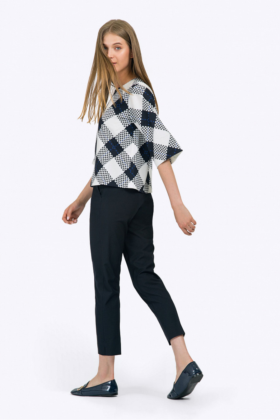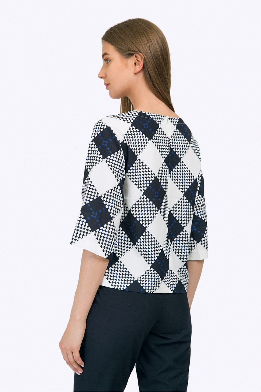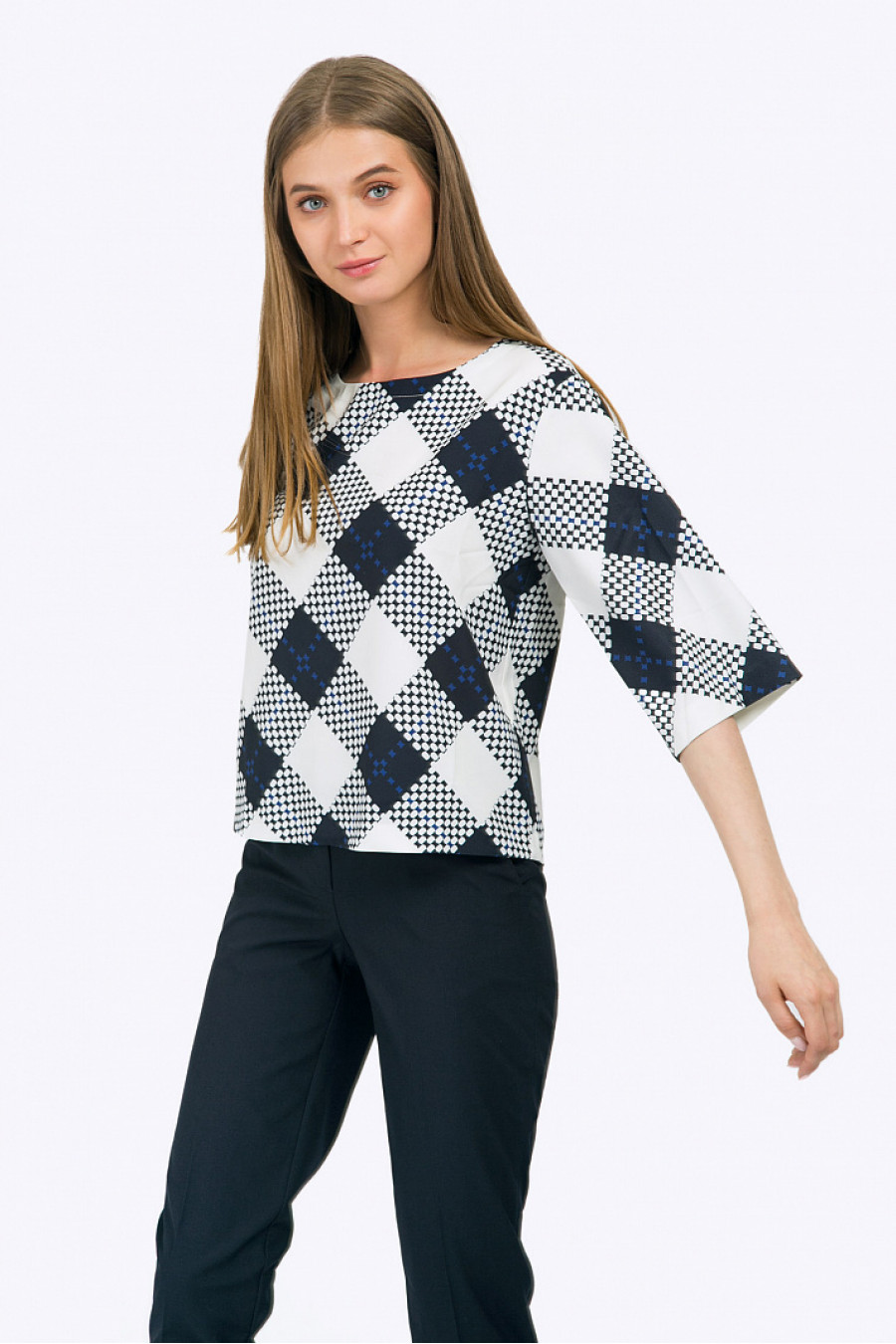 Нарядная блузка из вискозы с классическим орнаментом в бело-синих тонах. Актуальный объёмный рукав придаёт модели воздушность и делает руку более изящной. Скругленная горловина акцентирует внимание на ключицах и вытягивает шею. Образ на фото дополнен брюками D059-flika . Рост фотомодели 177см.