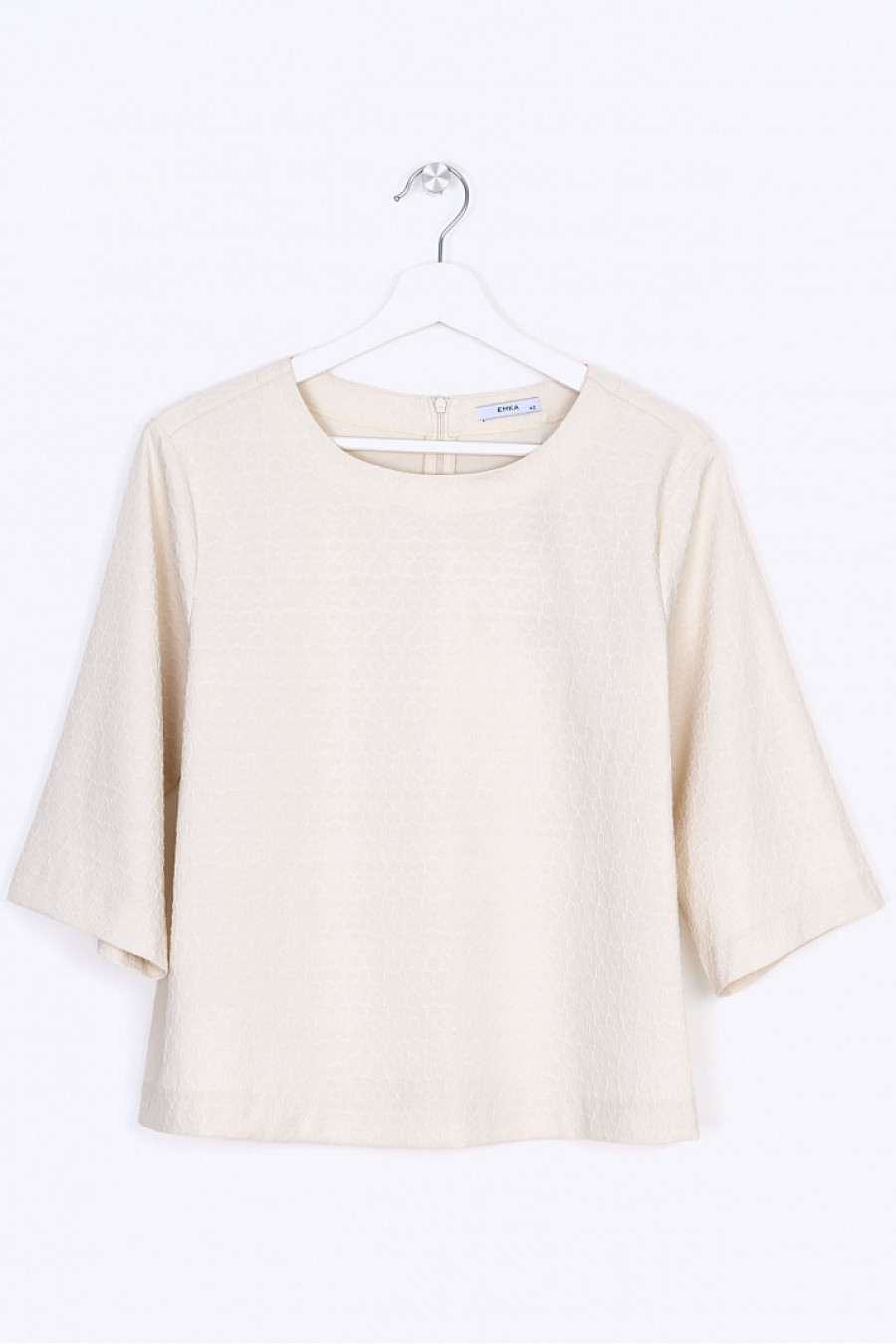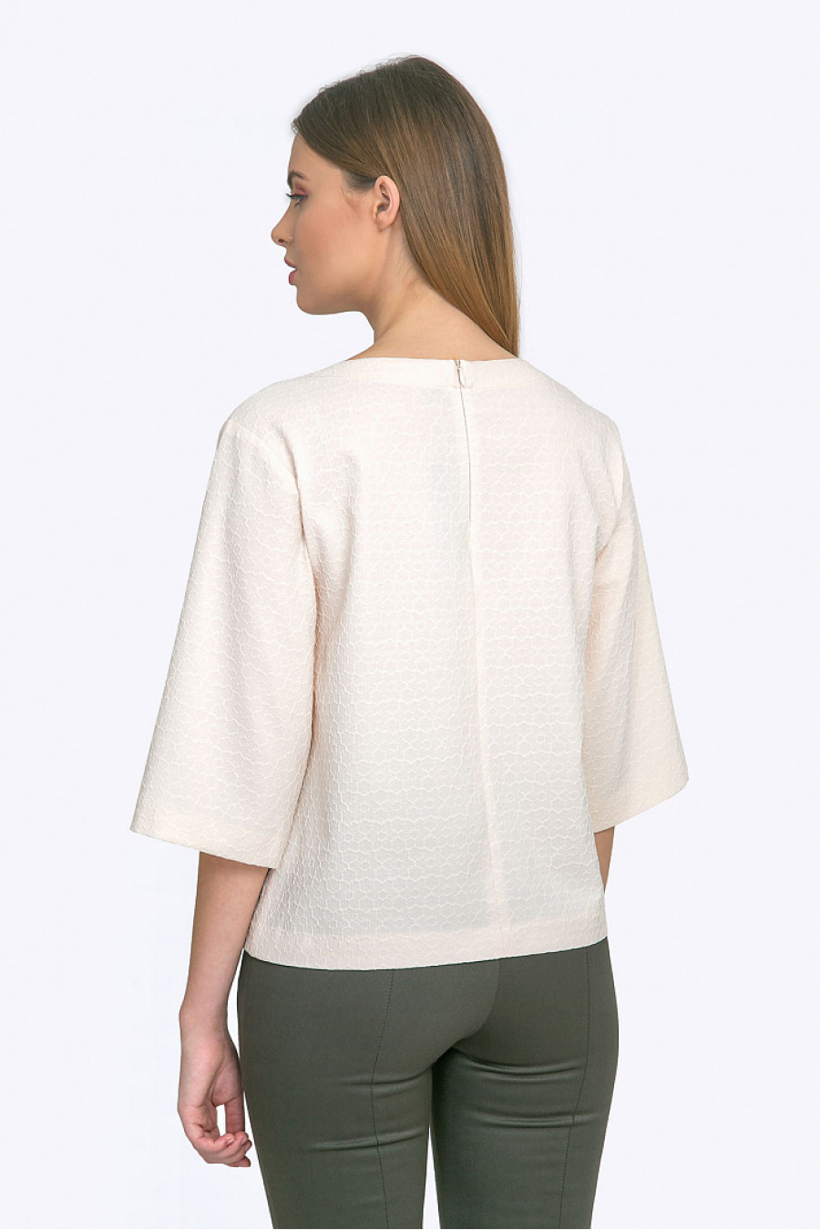 Сдержанный дизайн с легким намеком на японский стиль, богатая фактура жаккардовой ткани, гармоничные линии ворота и широких рукавов -кимоно - не оставят равнодушными поклонниц восточной эстетики в моде. С подобными брюками в комплекте - получаем цельный образ для активного уик-энда или энергичной офисной жизни. С расклешенной юбкой-миди или современными брюками( на фото) - собираем стильный стрит - look. Нежный молочный оттенок ткани айвори будет хорошо смотреться на блондинках и золотоволосых. Свободная посадка подойдет любому типу фигуры. Мягкая смесовая ткань с содержанием вискозы приятна в носке и проста в уходе. Образ на фото дополнен Брюками D053-rifle. Рост фотомодели 176 см.