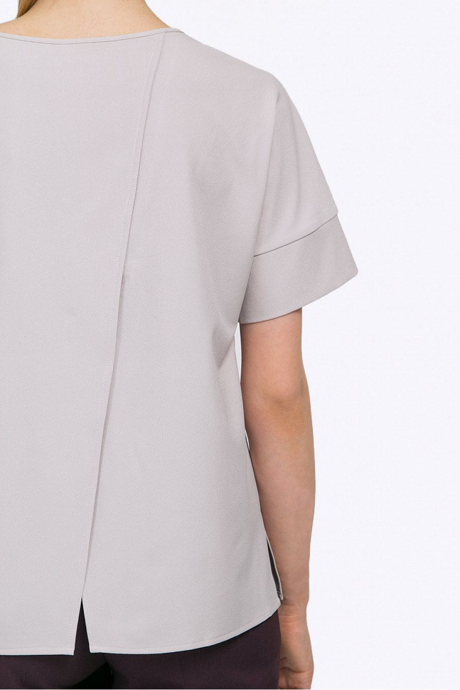 Светло-серая блузка с короткими цельнокроеными рукавами в
