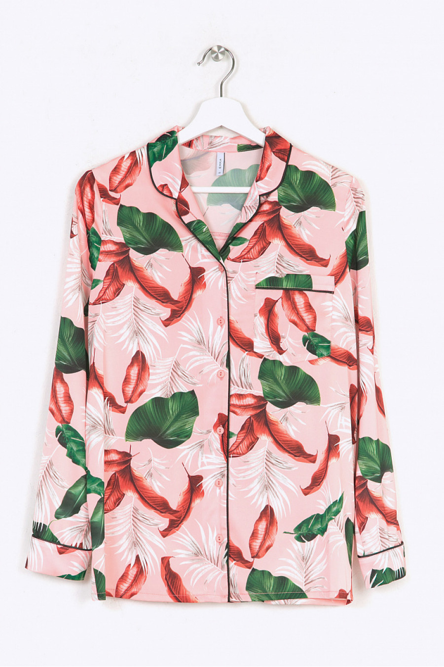 Розовая блузка с крупным растительным орнаментом в пижамном стиле.Модель имеет прямой силуэт, небольшой отложной воротничок, спереди кармашек изастёжку на пуговки. Спинка дополнена кокеткой и встречной складкой, обеспечивающейсвободу облегания. Длинные рукава с манжетами на пуговках. Довершает образ контрастный чёрный кант, обрамляющий ворот, карман, полочку с застёжкой и манжеты. Образ на фото дополнен брюками D098-matilda . Рост фотомодели 177 см.