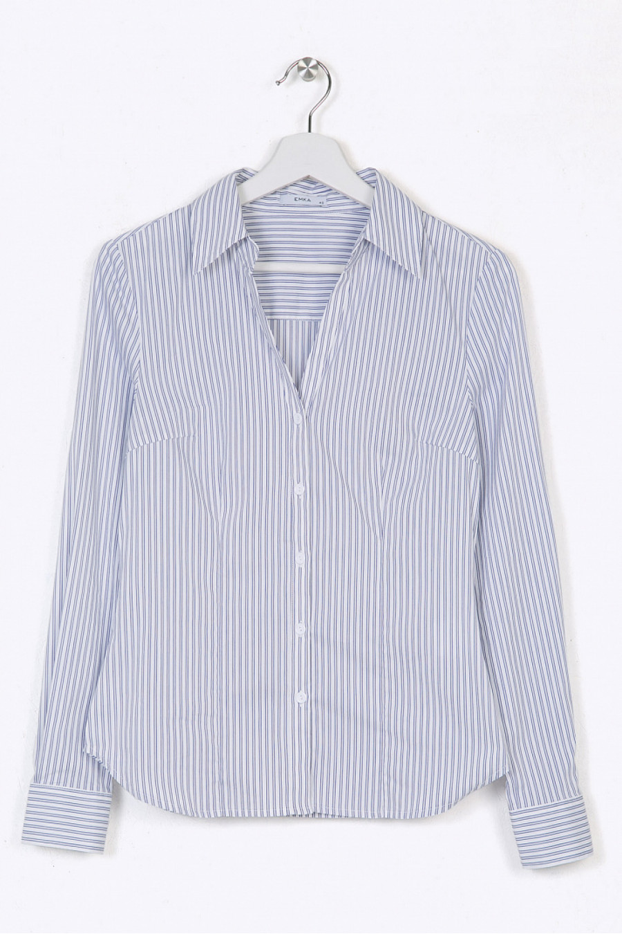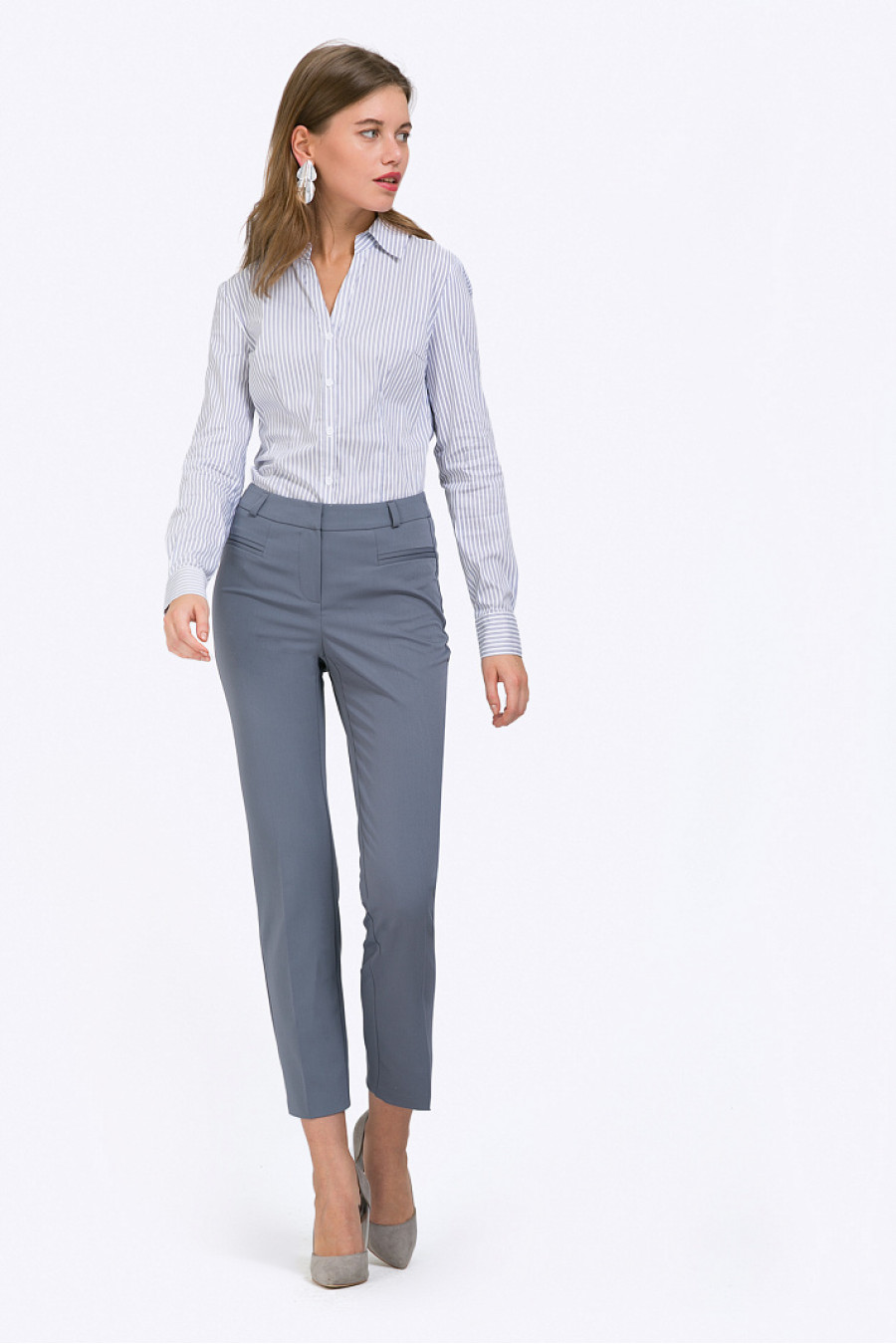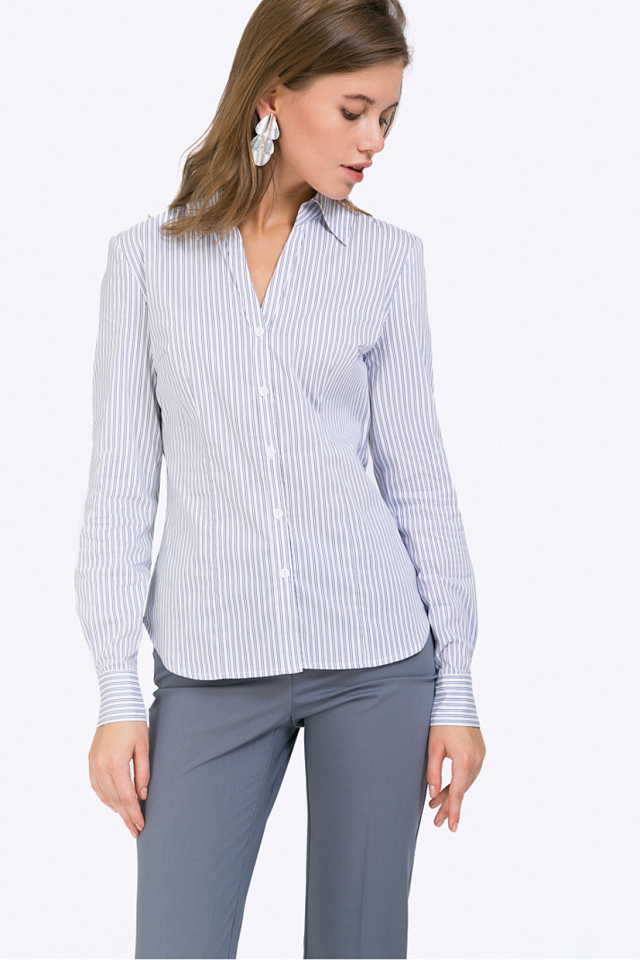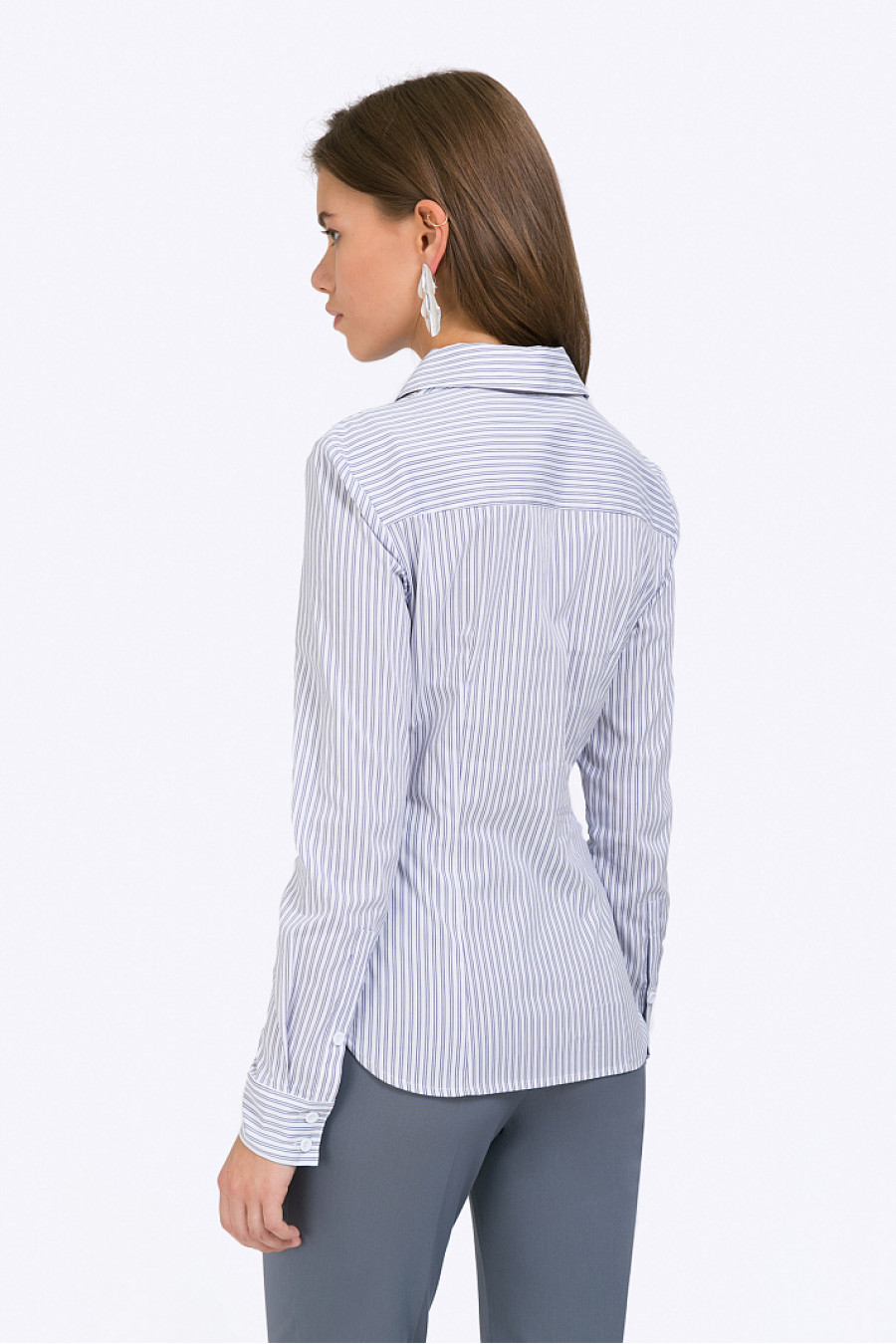 Полосатая блузка с длинными рукавами из эластичного хлопка. Имеет полуприталенный силуэт за счёт вертикальных вытачек, кокетку на спинке, фигурную линию подола. Отложной воротник совмещён с V-образным вырезом горловины и планкой застёжки. Рукава дополнены манжетами с планкой на пуговках.Образ на фото дополнен брюками D021-iveta . Рост фотомодели 174 см.