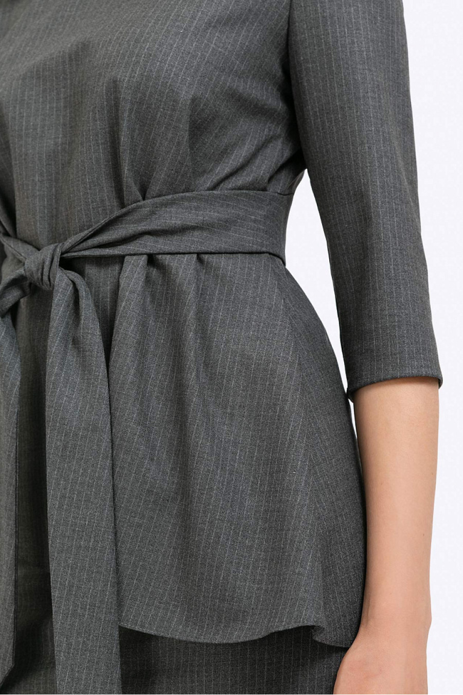 Деловая блузка благородного цвета. Модель со свободным облеганием по фигуре, рукавами ¾, ассиметричной линией подола. Имеет круглый вырез горловины и застёжку на пуговку в заднем среднем шве. Длинный пояс притачан на спинке на уровне завышенной линии талии и при завязывании образует красивые мягкие сладки. Рост фотомодели 177 см.
