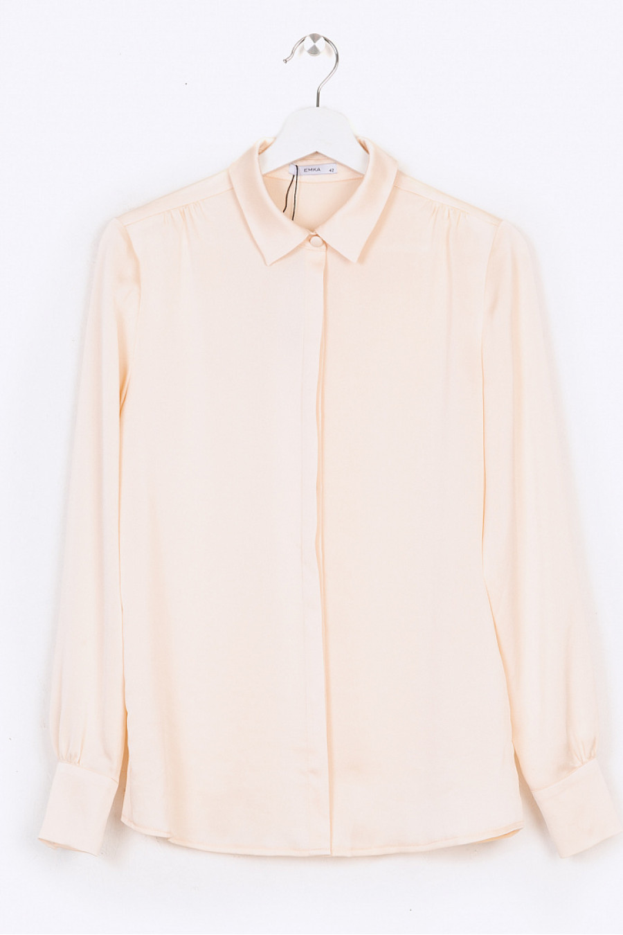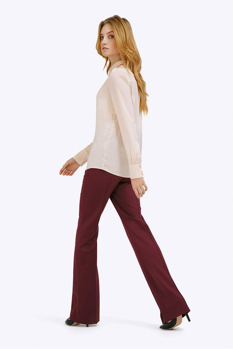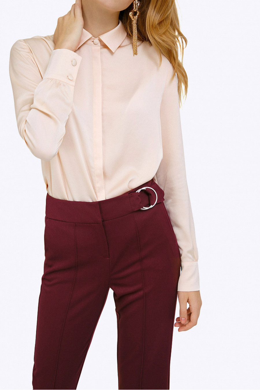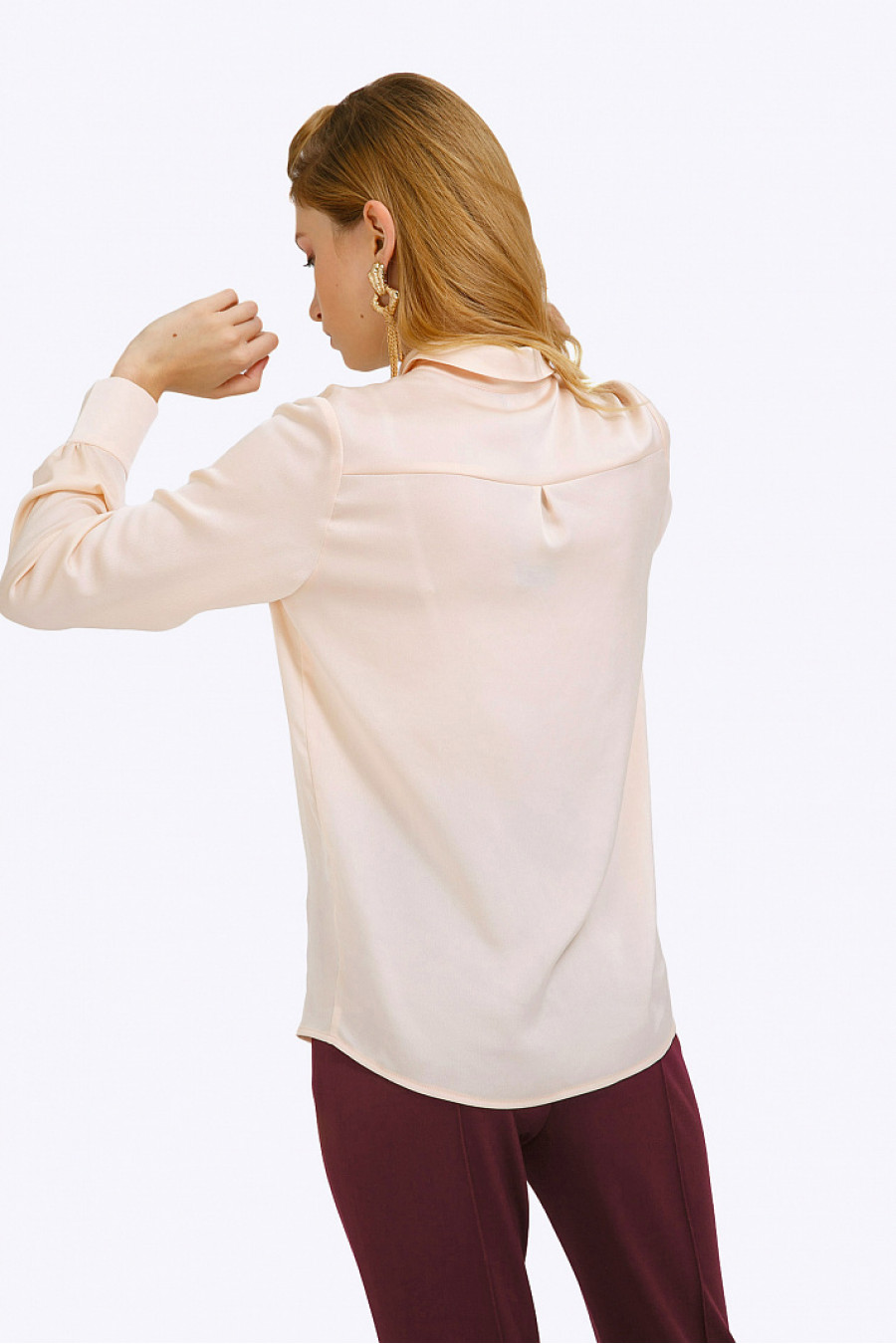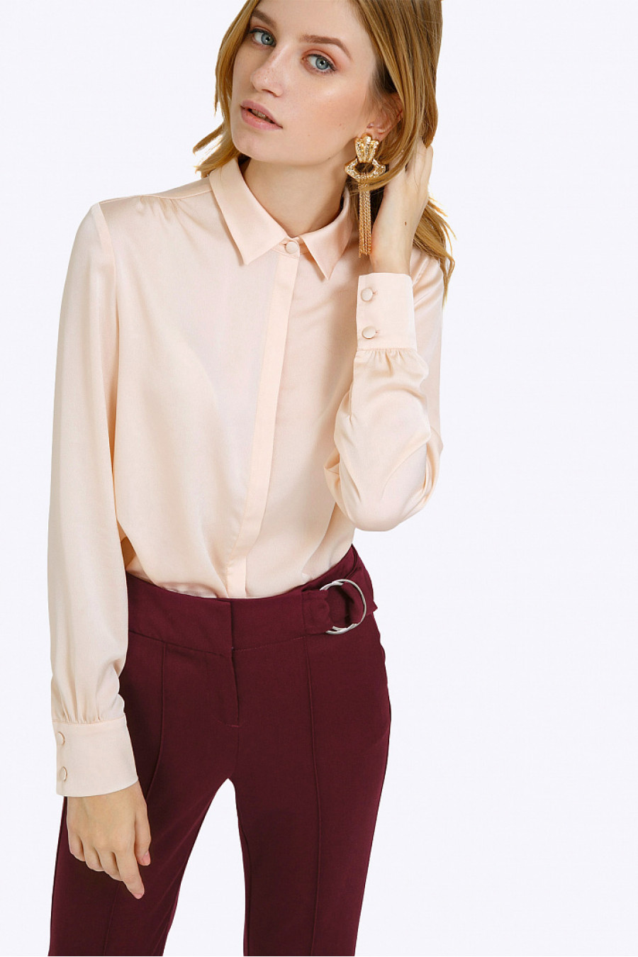 Блузка из струящейся поливискозы. Модель прямого кроя, свободно облегает фигуру. Блузка имеет отложной воротник, закрытую застежку-планку спереди, длинные рукава, дополненные широкими манжетами с обтянутыми тканью пуговичками. Рост фотомодели 177 см.