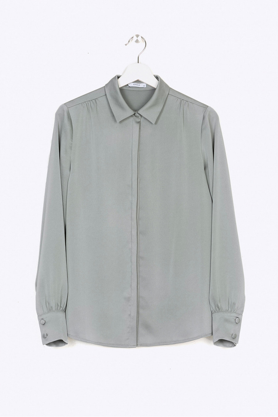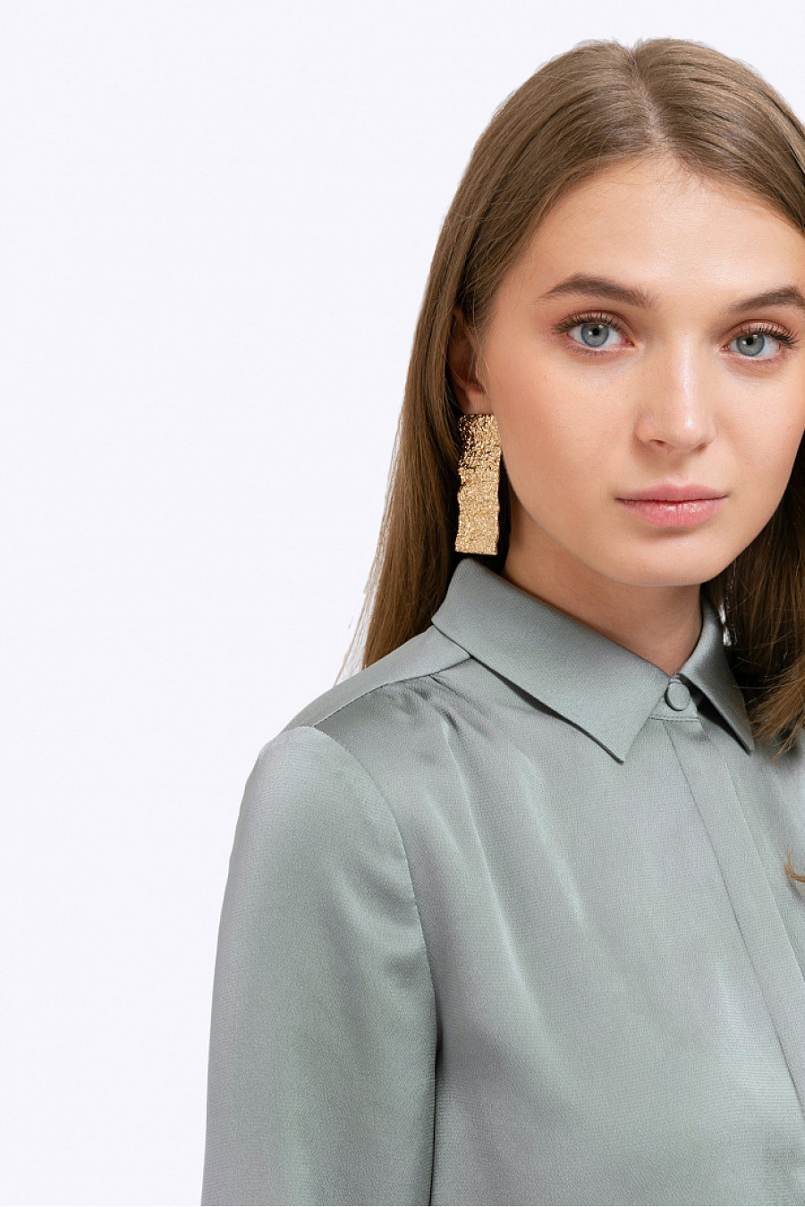 Блузка из струящейся поливискозы. Модель прямого кроя, свободно облегает фигуру. Блузка имеет отложной воротник, закрытую застежку-планку спереди, длинные рукава, дополненные широкими манжетами с обтянутыми тканью пуговичками. Рост фотомодели 177 см.