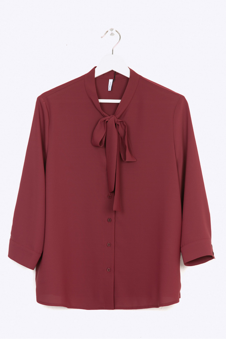 Блузка с воротником «аскот».Модель прямого кроя,свободно облегает фигуру. Имеет рукава¾,дополненные манжетами с пуговицами. Центром композиционного решения является воротник, который можно завязывать в виде банта, галстука, либо цветка.