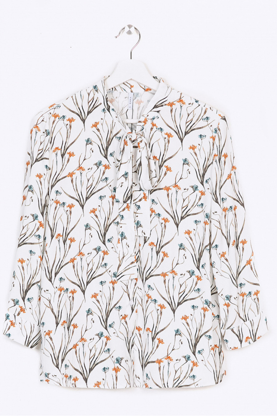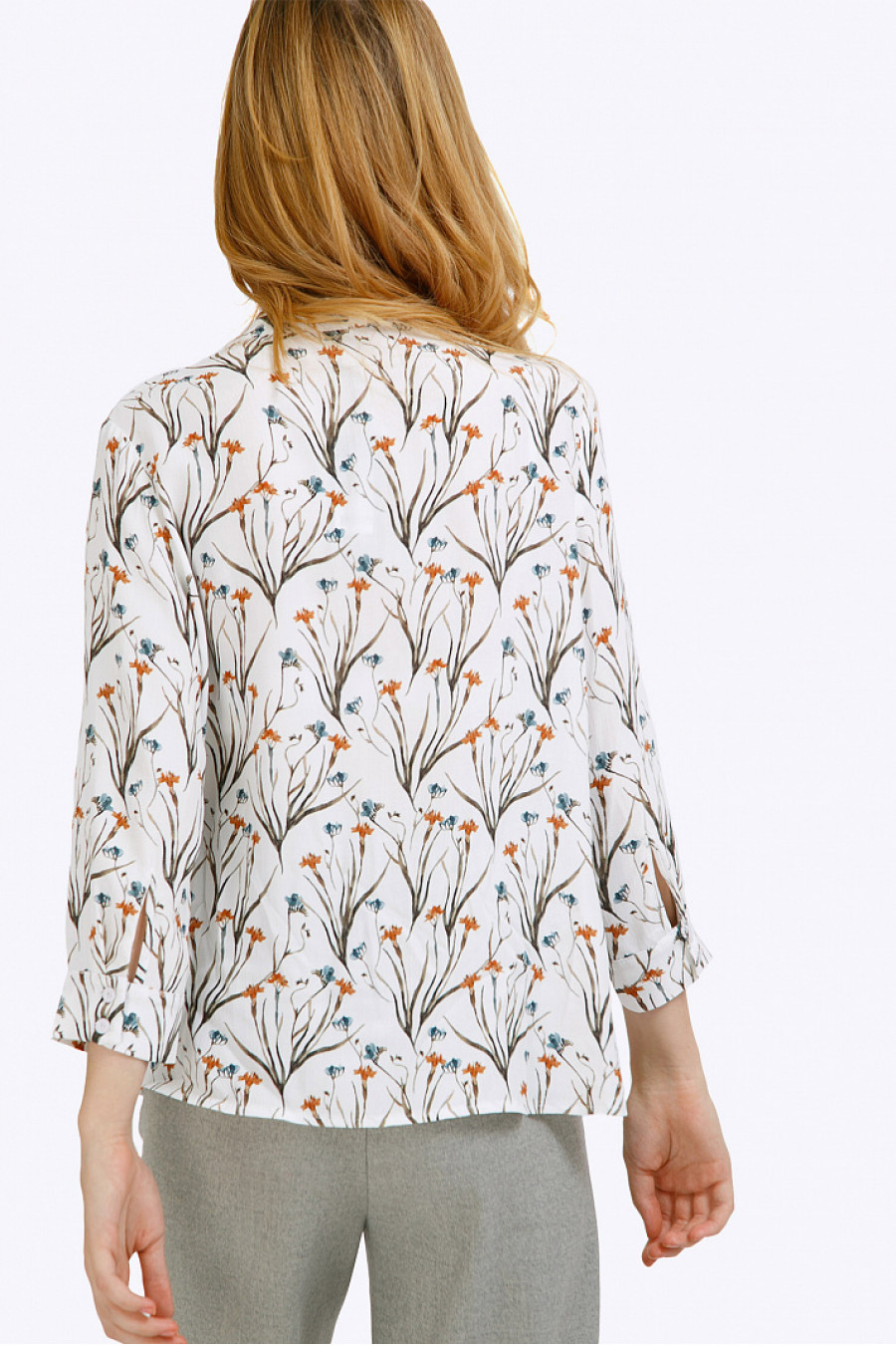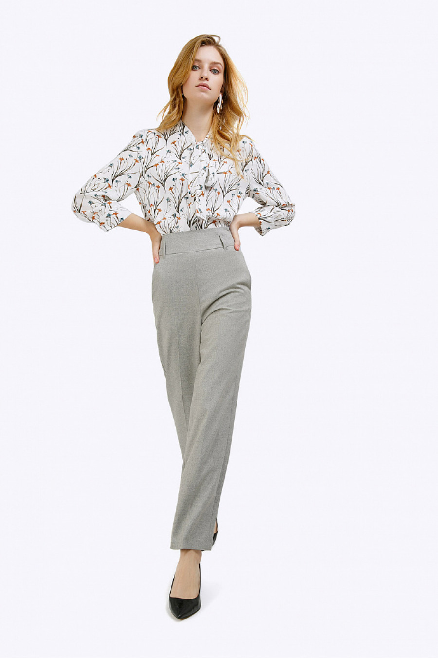 Блузка с воротником «аскот».Модель прямого кроя,свободно облегает фигуру. Имеет рукава¾,дополненные манжетами с пуговицами. Центром композиционного решения является воротник, который можно завязывать в виде банта, галстука, либо цветка.
