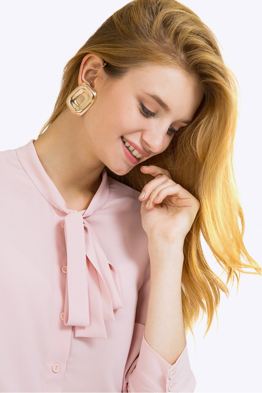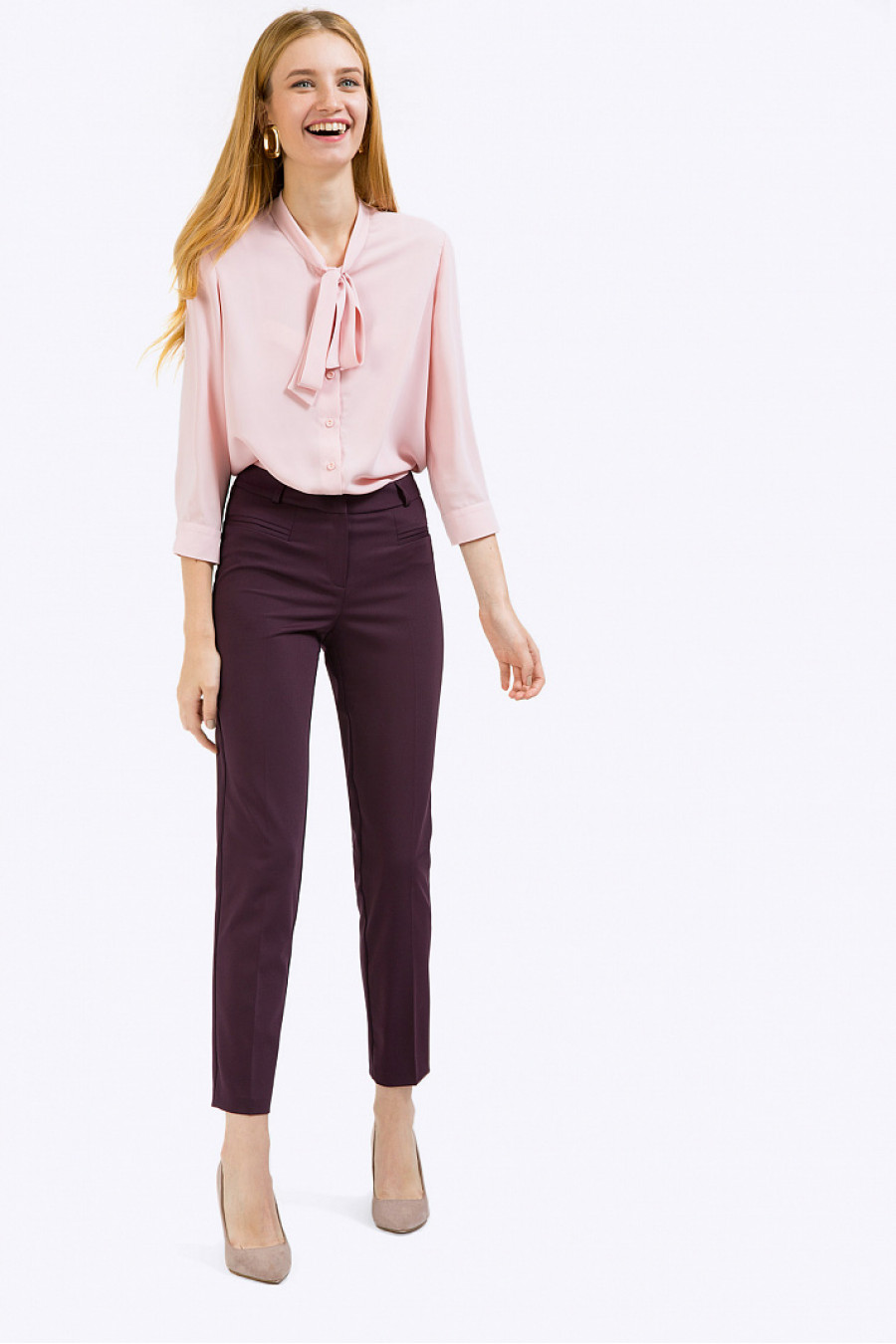 Нежно-розовая блузка с воротником «аскот». Для создания образовс ноткой романтикив классическом, деловом и городских стилях.Модель прямого покроя со свободным облеганием и фигурной линией подола. Рукава ¾ дополнены манжетами с пуговками. Центром композиционного решения является воротник, который можно завязывать в виде банта, галстука, либо цветка. Образ на фото дополнен брюками D021-mundo . Рост фотомодели 177 см.