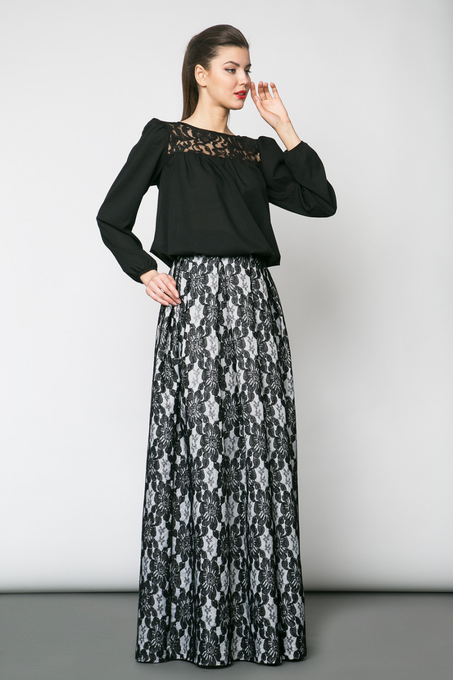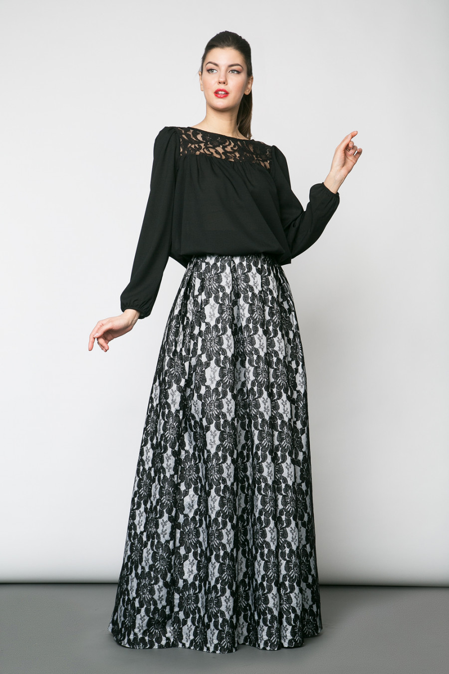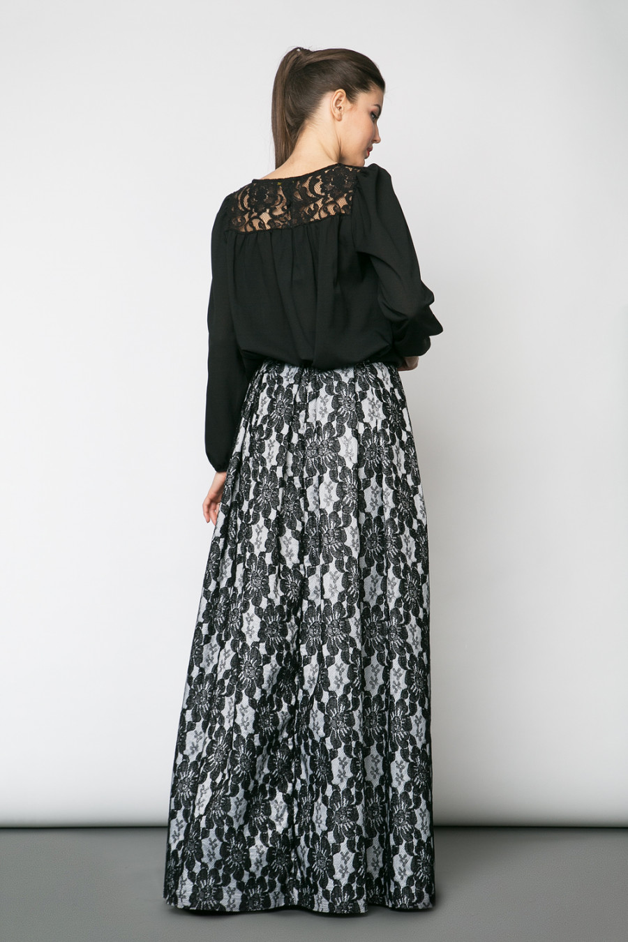Блузка с длинным рукавом-воланом, с кружевным воротом, рукав-фонарь.