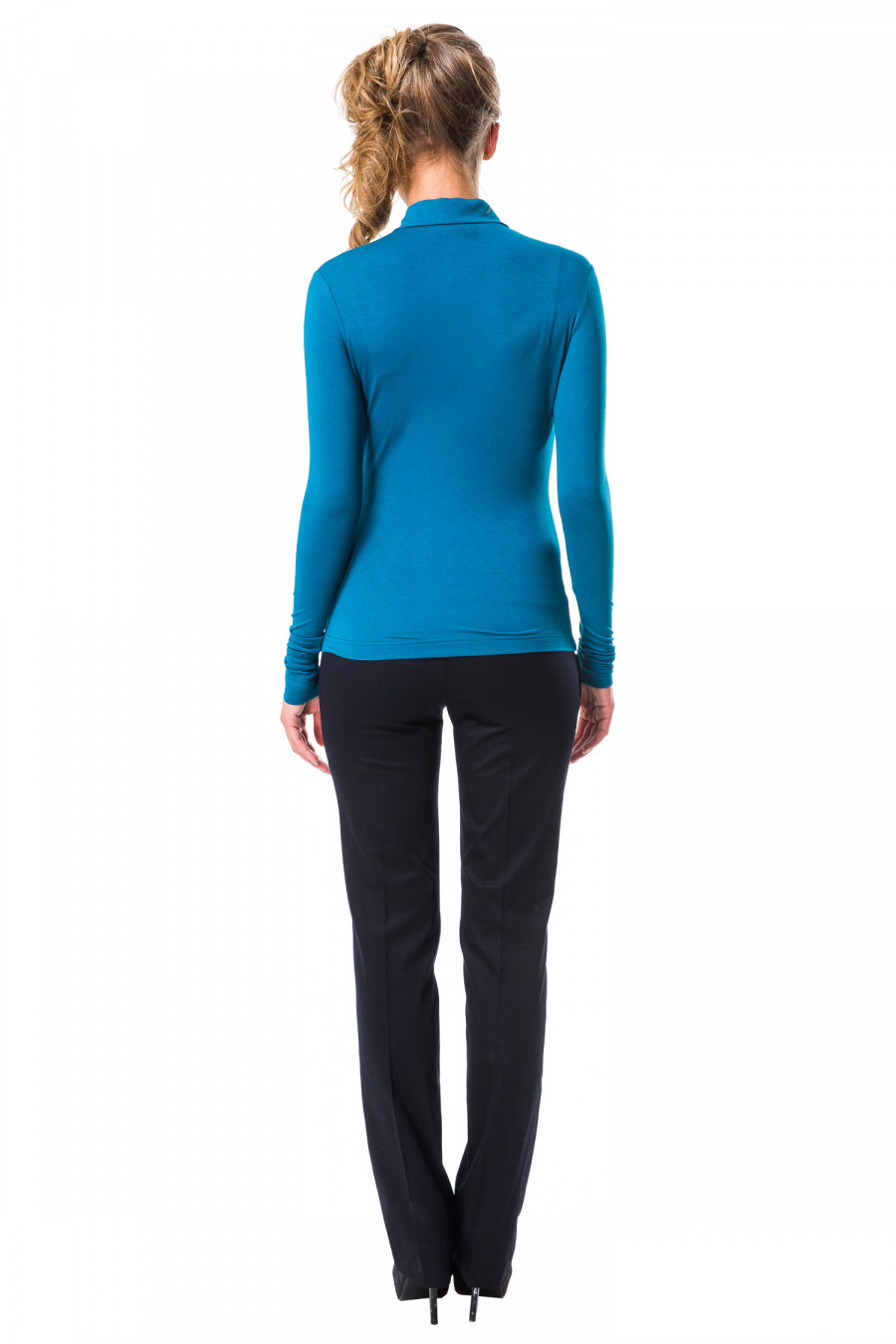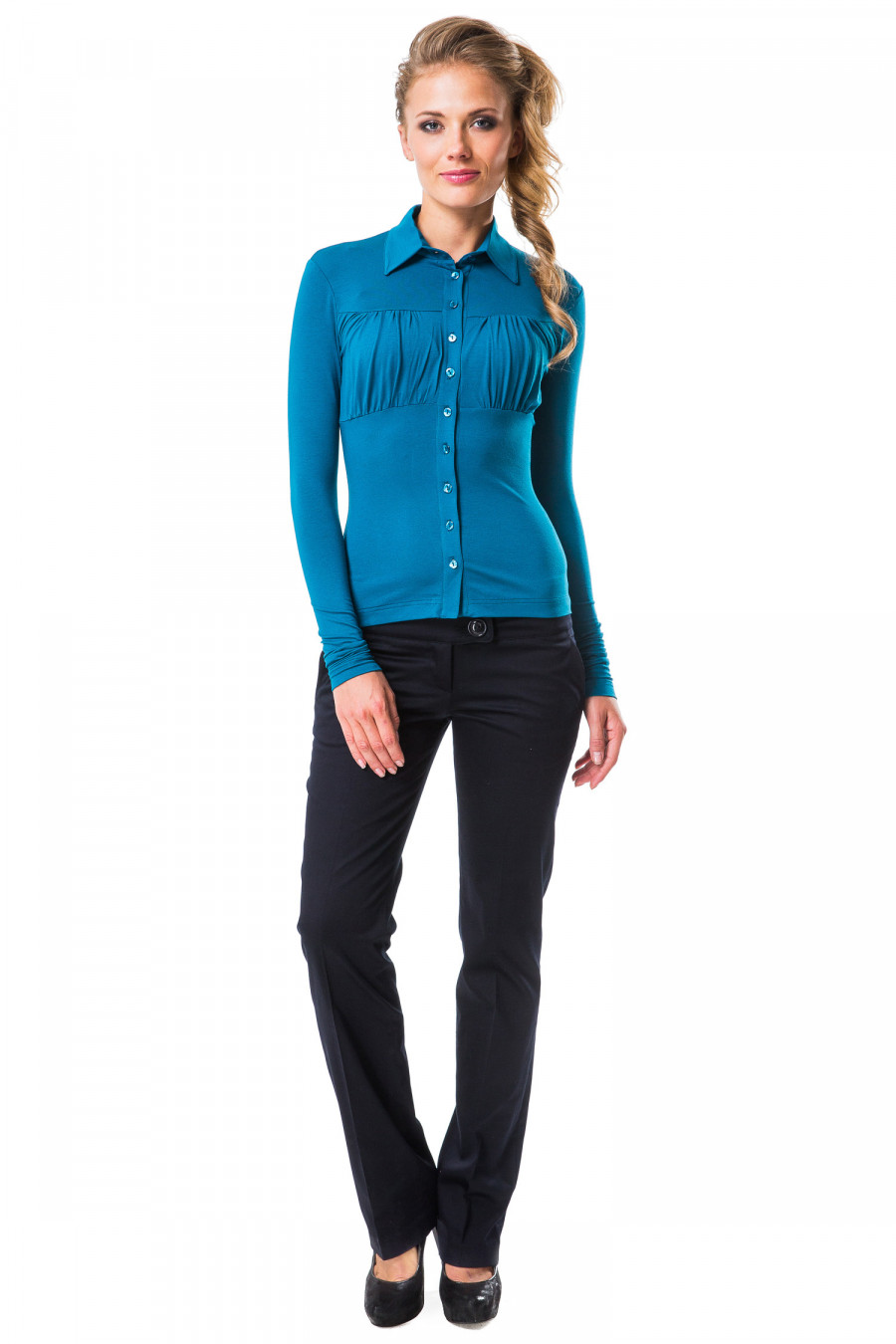 Стильная блузка из качественного материала. Модель приталенного кроя с отложным воротником, застежкой на пуговицы и длинными рукавами. Оригинальной деталью является декориративная сборка на груди. Отличный вариант для офиса и на каждый день.