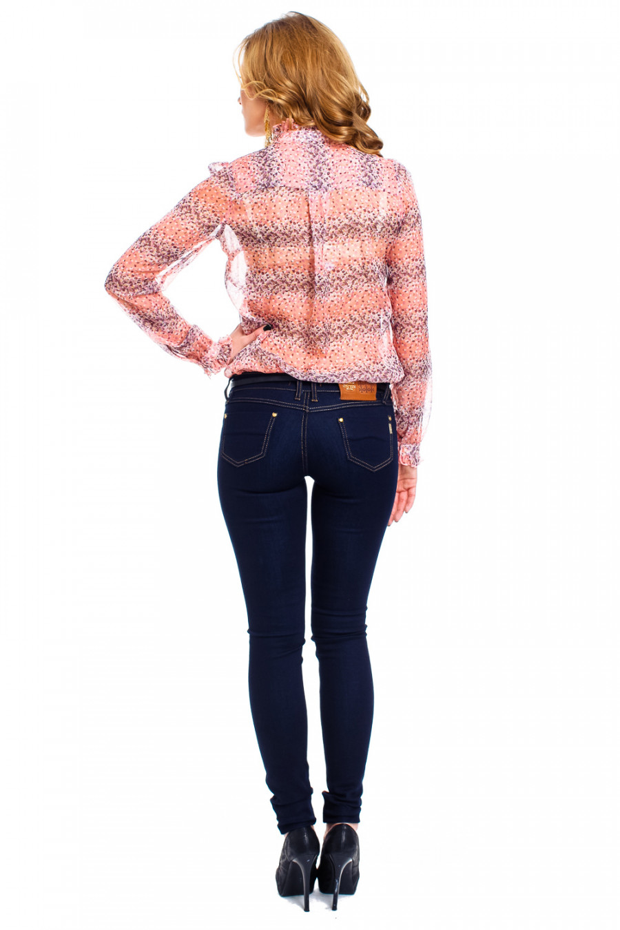 Очаровательная стильная блуза с нежным цветочным рисунком по всему силуэту. Модель с застежкой на пуговицы и длинными рукавами, по линии застежки украшена жабо. Воротник отложной.Благодаря тонкой ткани, вещь выглядит воздушной и очень романтичной, что дает Вам возможность разнообразно обыграть ее с вашим гардеробом.