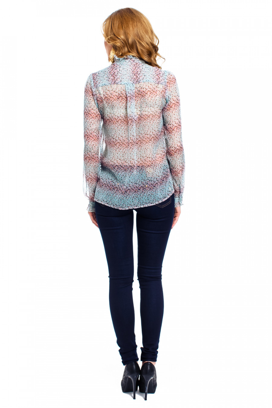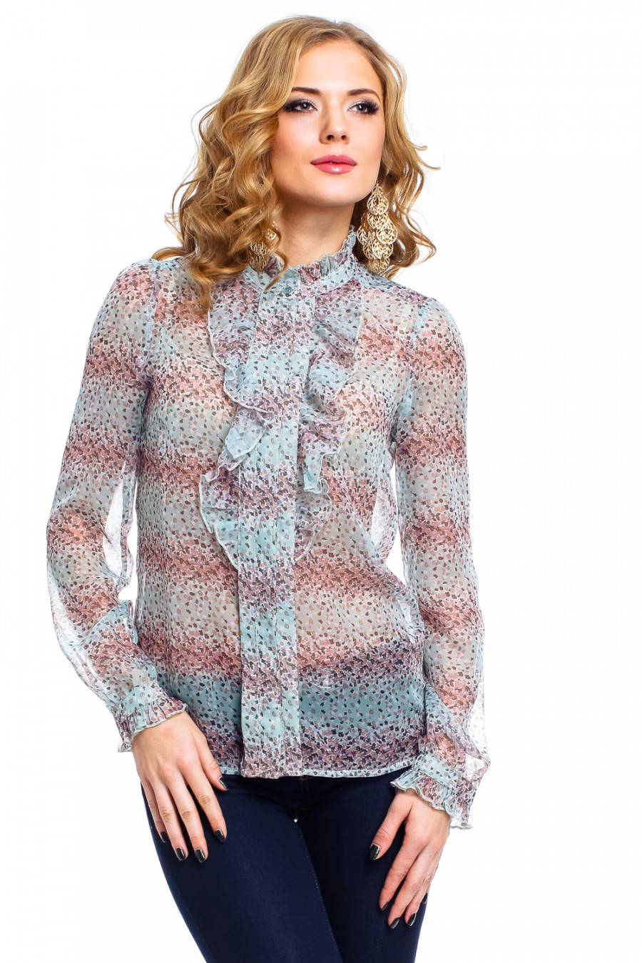 Очаровательная стильная блуза с нежным цветочным рисунком по всему силуэту. Модель с застежкой на пуговицы и длинными рукавами, по линии застежки украшена жабо. Воротник отложной.Благодаря тонкой ткани, вещь выглядит воздушной и очень романтичной, что дает Вам возможность разнообразно обыграть ее с вашим гардеробом.