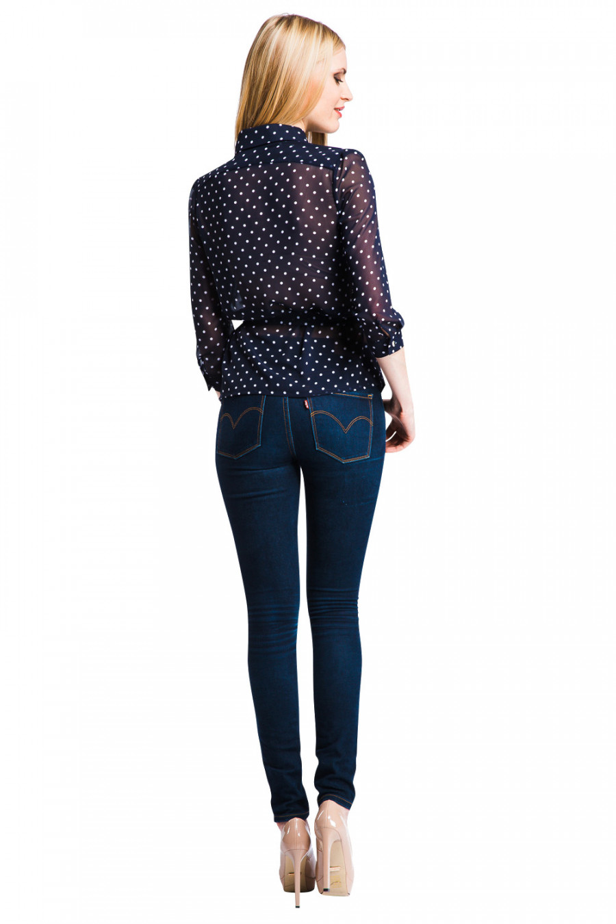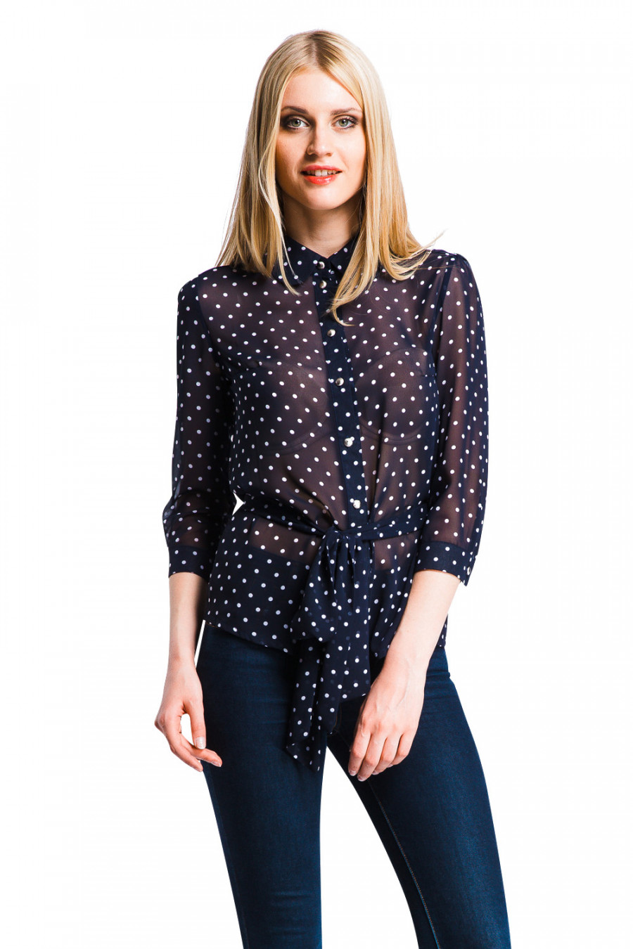 Эффектная и нарядная блузка из полупрозрачной шифоновой ткани полуприлегающего силуэта. Рукава втачные 3/4, манжет с застёжкой на пуговицу. Застёжка обработана узкой планкой на петли и пуговицы с перламутровым эффектом. Воротник отложной с закруглёнными концами и съёмным бантом. Стильная блузка-идеальный выбор для создания нежного женственного образа.