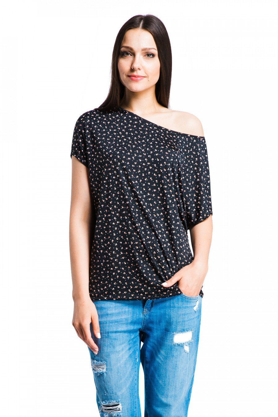 Стильная блузка свободного покроя, выполнена из высококачественной микрофибры. Модель с округлым вырезом горловины и прямыми цельнокройными рукавами. Модель украшена мелким принтом в цветок и будет прекрасно гармонировать с любыми предметами гардероба. Отличный вариант для летних дней.