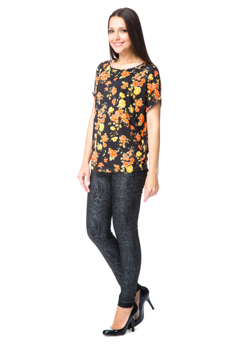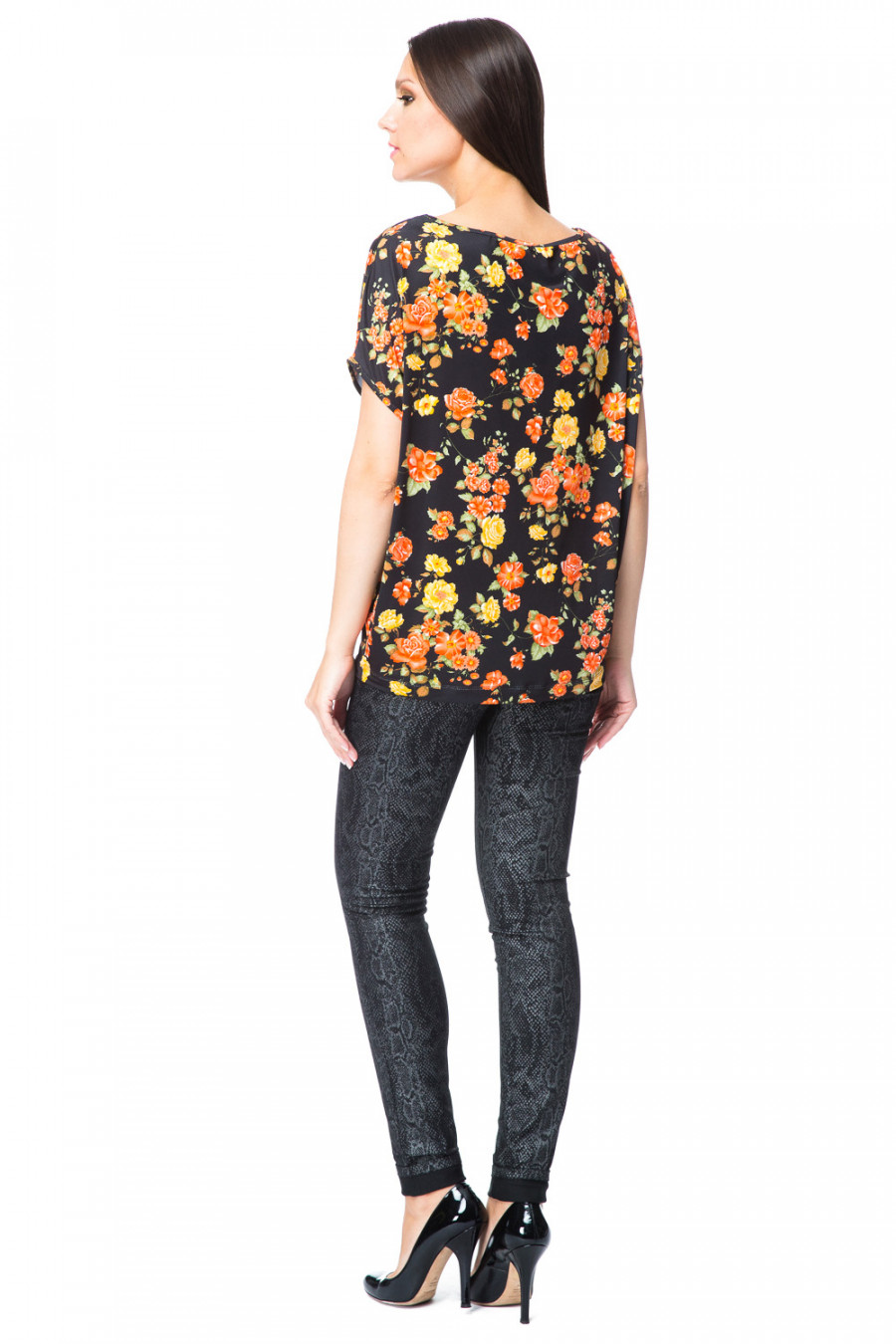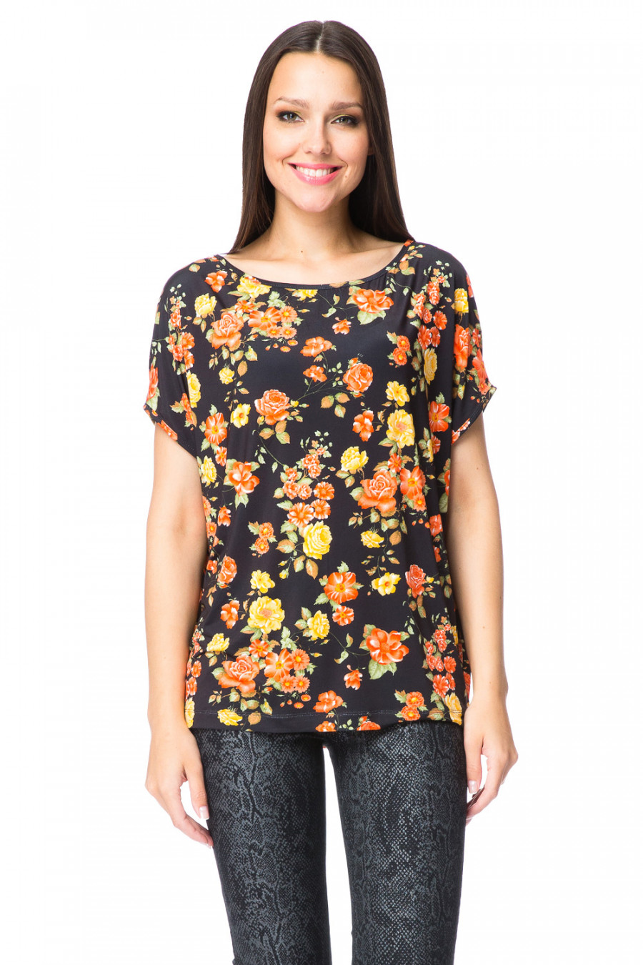 Модная блузка свободного покроя, выполнена из струящейся микрофибры с оригинальным принтом в горошек. Модель с округлым вырезом горловины и прямыми цельнокройными рукавами. Модель будет прекрасно гармонировать с любыми предметами гардероба. Отличный вариант для летних дней.