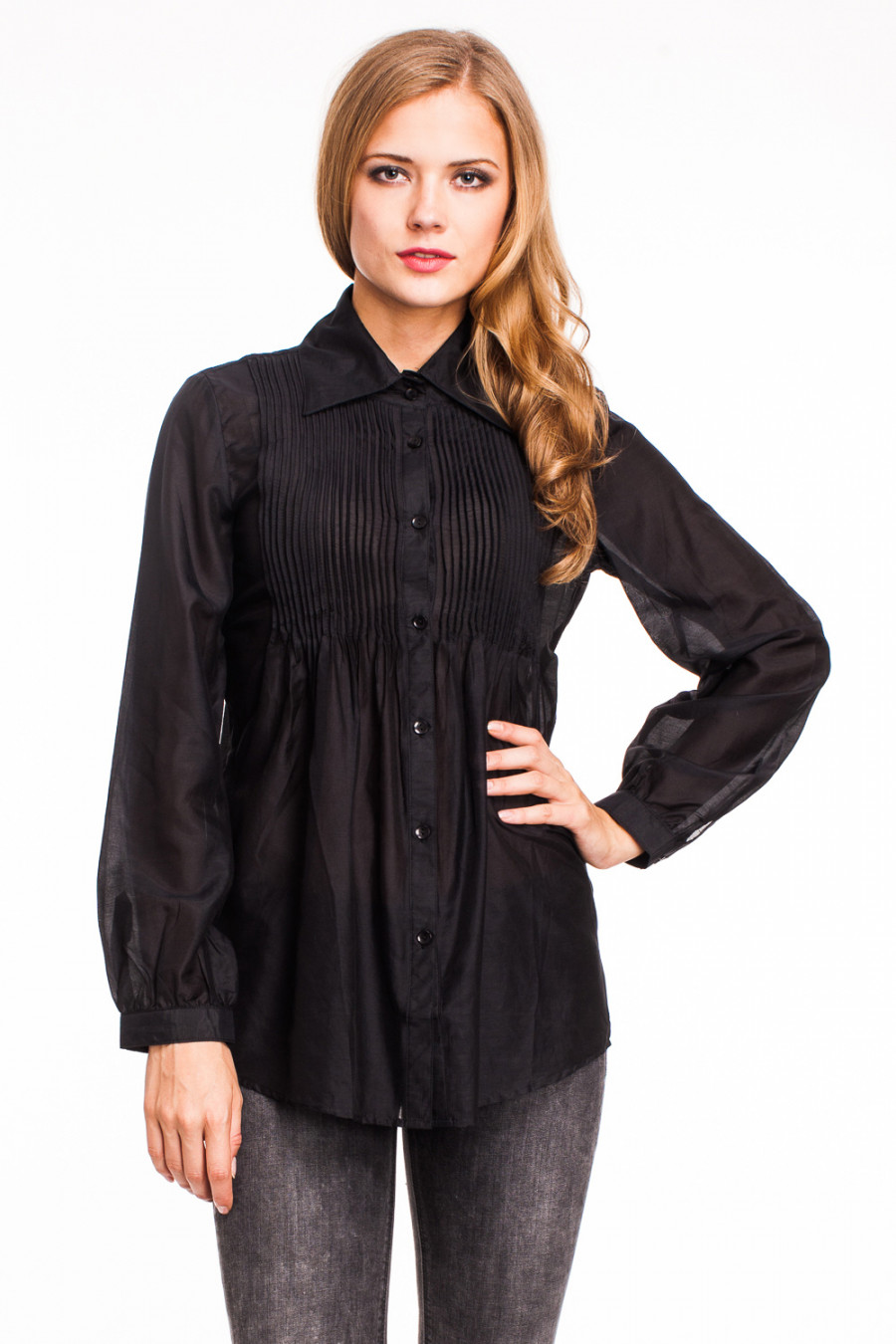 Легкая блузка разнообразит Ваш гардероб и позволит Вам выглядеть великолепно! Тонкий поясок под грудью позволит скрыть все недостатки фигуры и подчеркнуть зону декольте. Из-за игривой плиссировки рубашка не кажется скучной, а рукава с подворотом выгодно представят Ваши тонкие кисти.