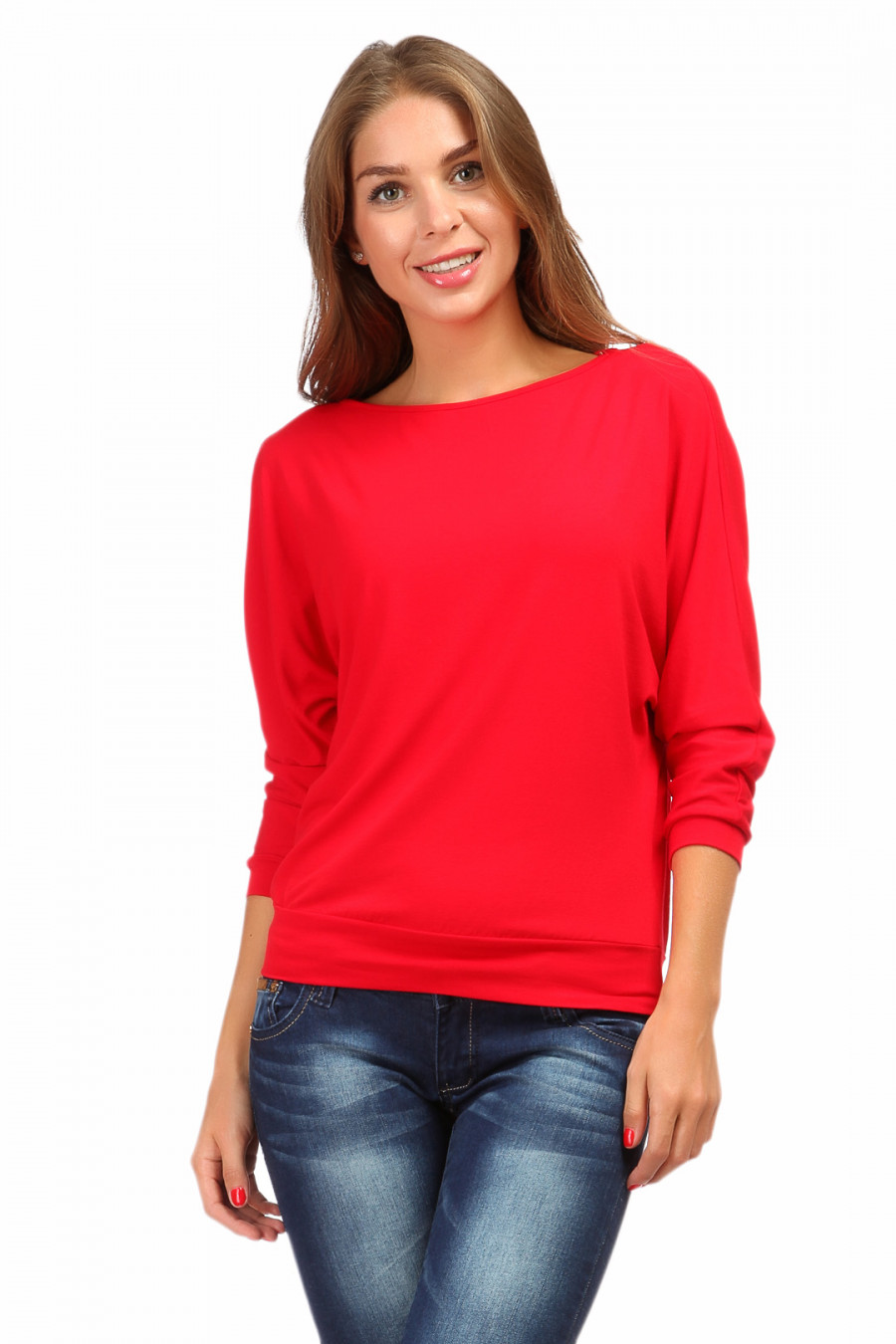 Трикотажная блуза с рукавом "летучая мышь" и округлым вырезом.