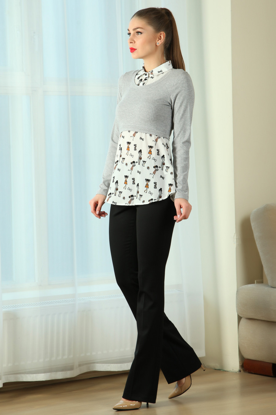 Блуза с иммитацией трикотажного жакета. Рукав длинный.