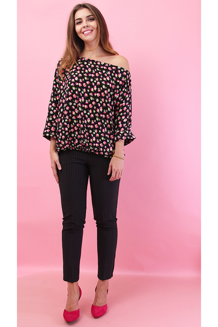Оригинальная блузка с открытым плечом, рукава 3\4 , по низу на завязках