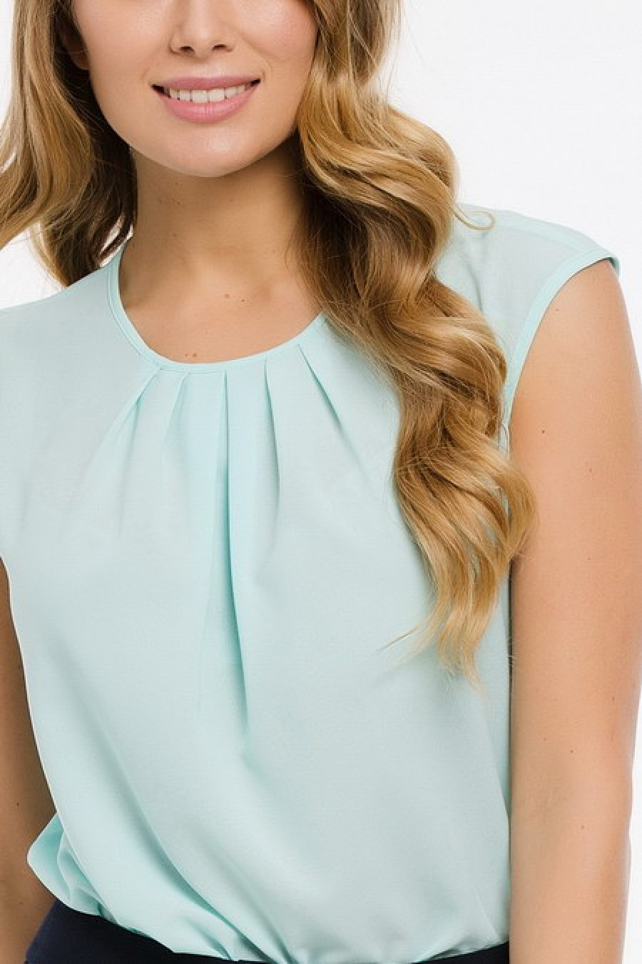 Стильная блуза без рукавов, присборенная в области горловины.
