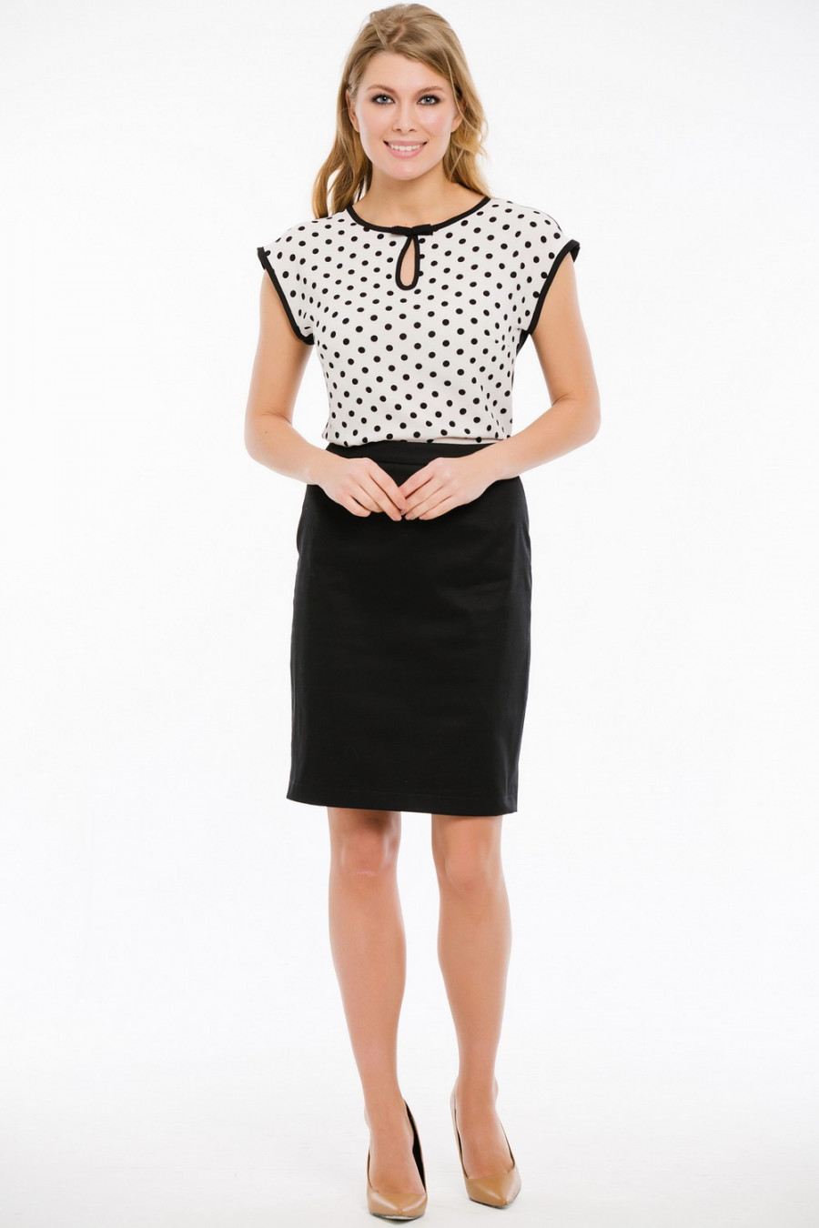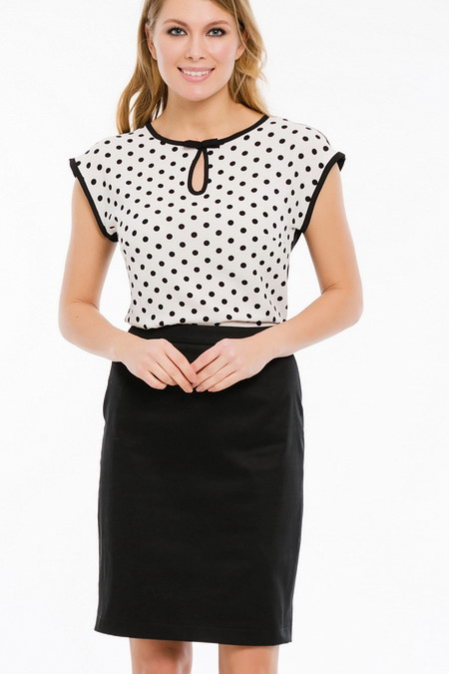 Легкая блуза с укороченным рукавом с орнаментом "черный горох". Отделка контрастной тканью по горловине рукавам.