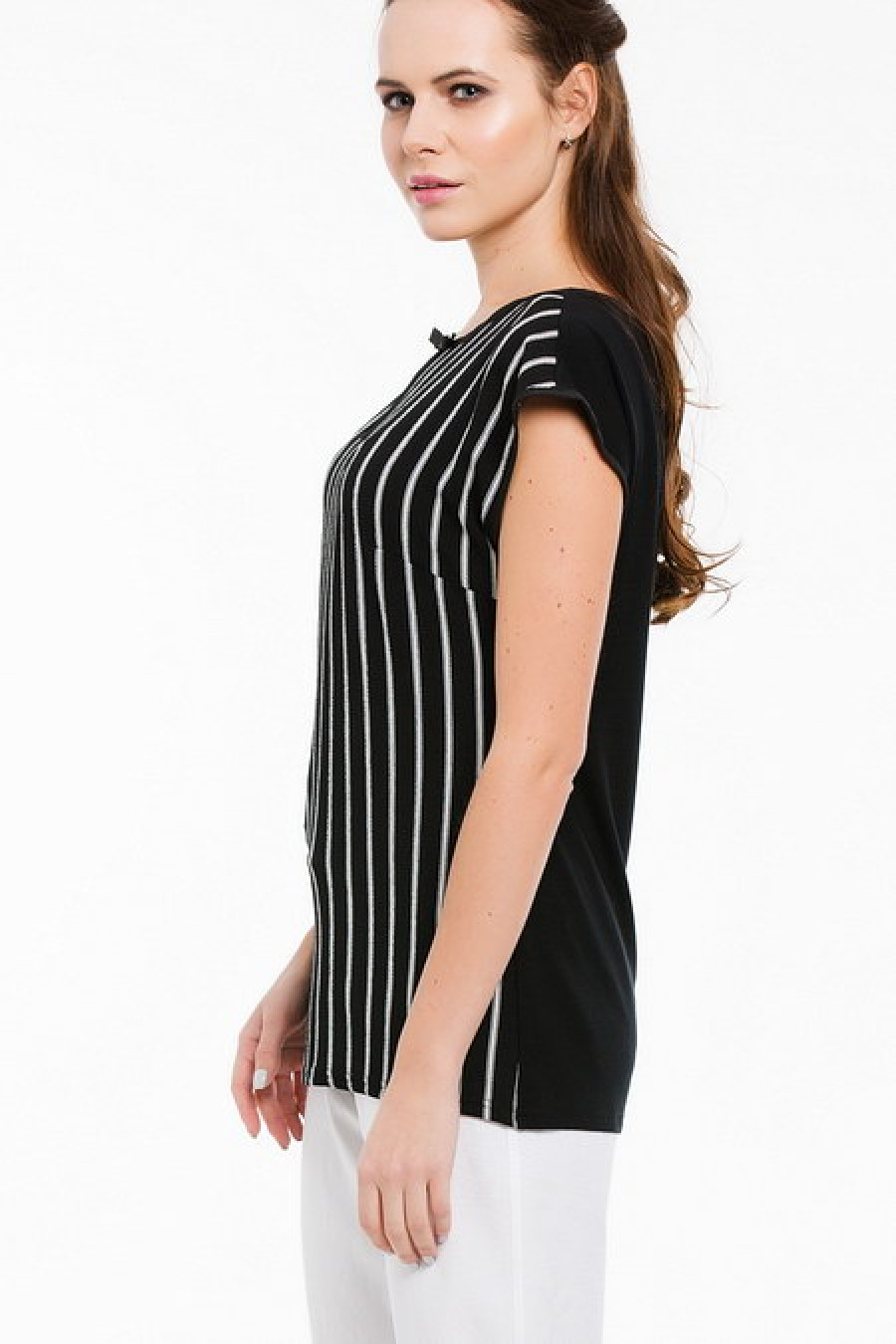Легкая блуза с укороченным рукавом с орнаментом "черные полосы". Отделка контрастной тканью по горловине рукавам.