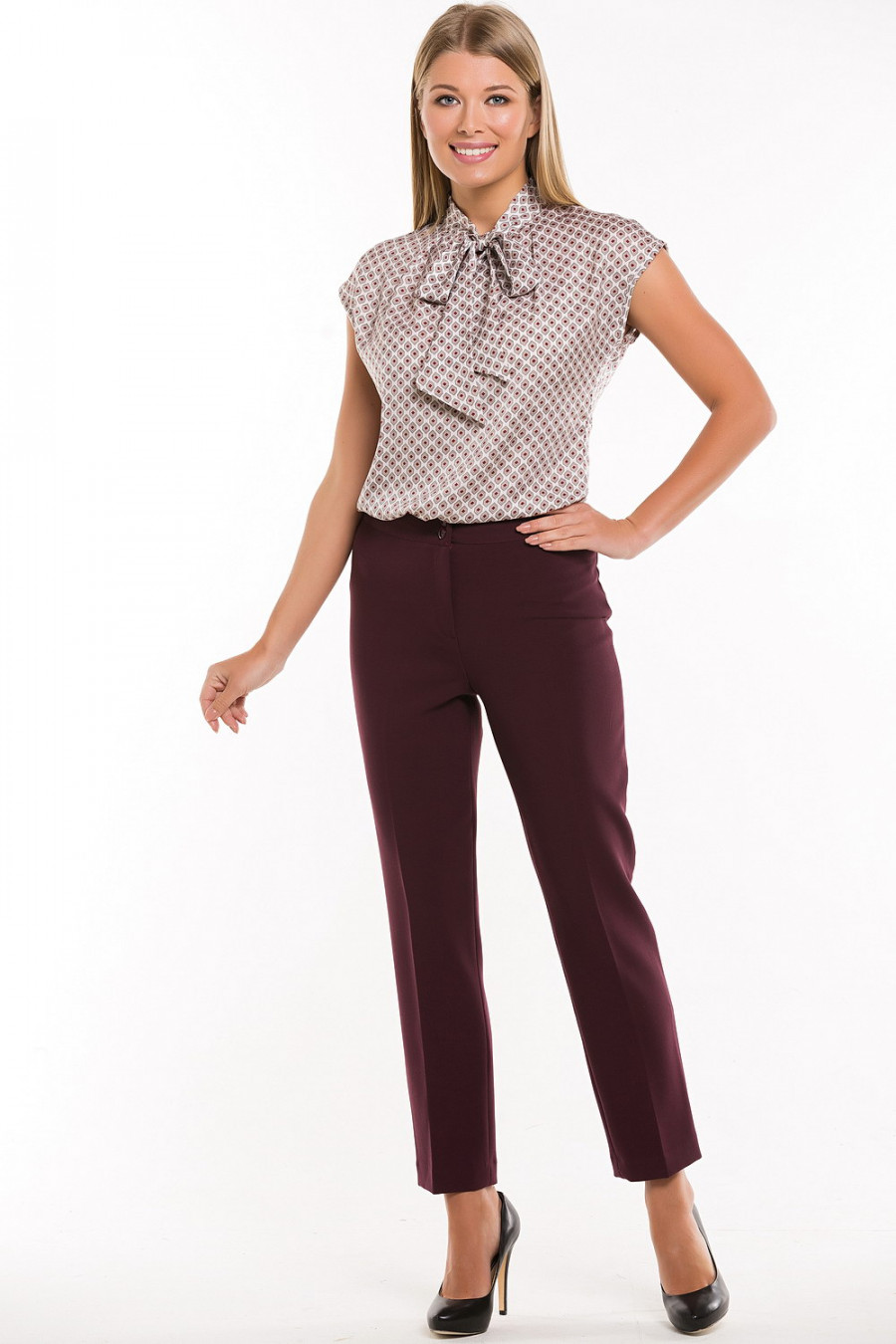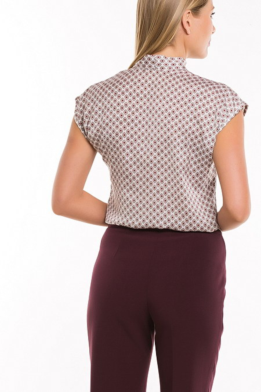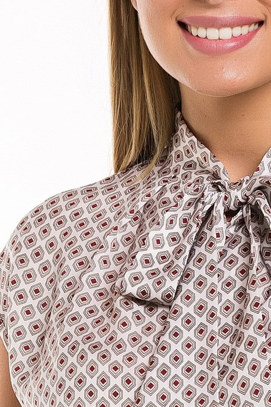 Деловая блуза с коротким рукавом, декорированная бантом.