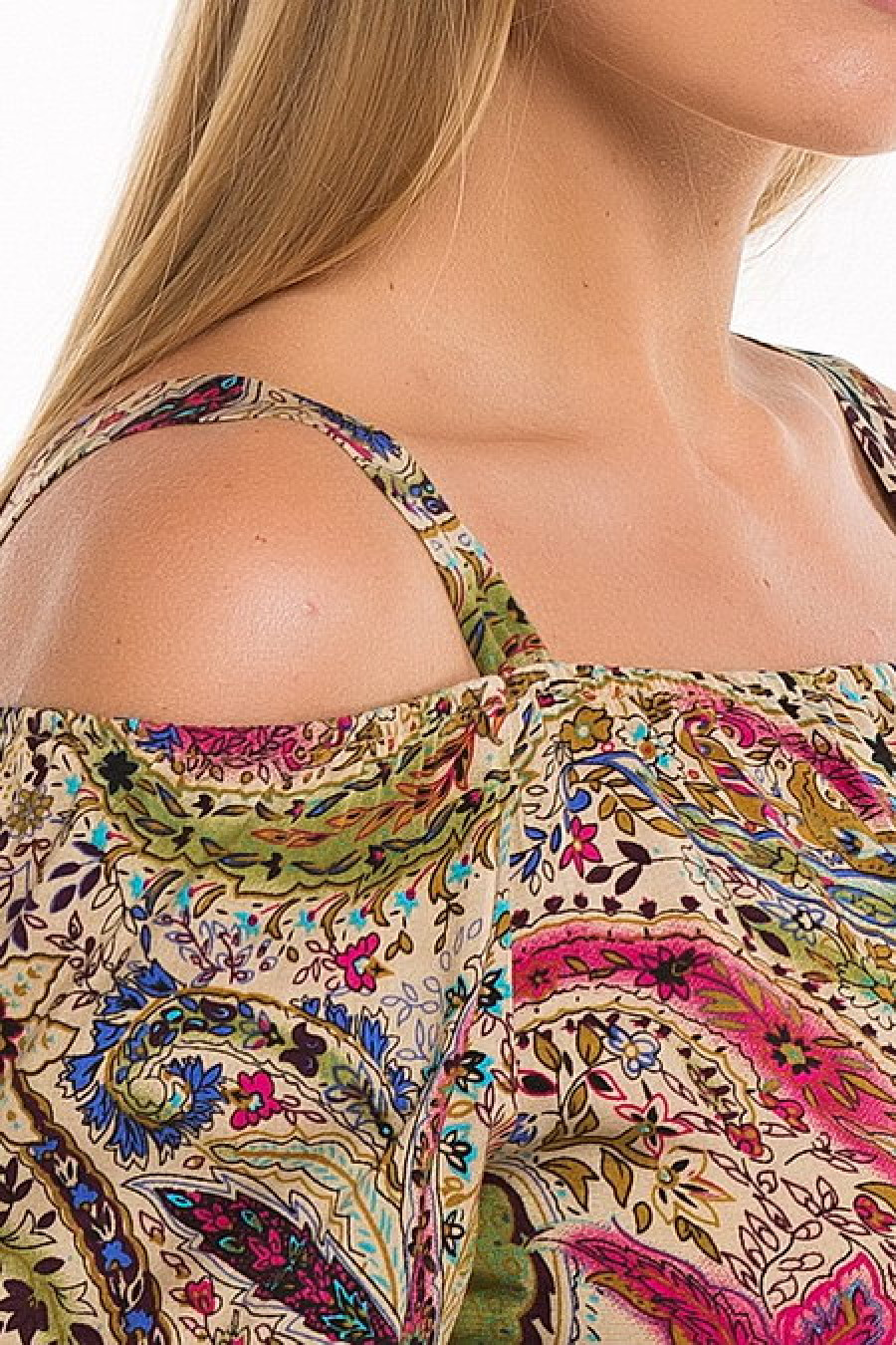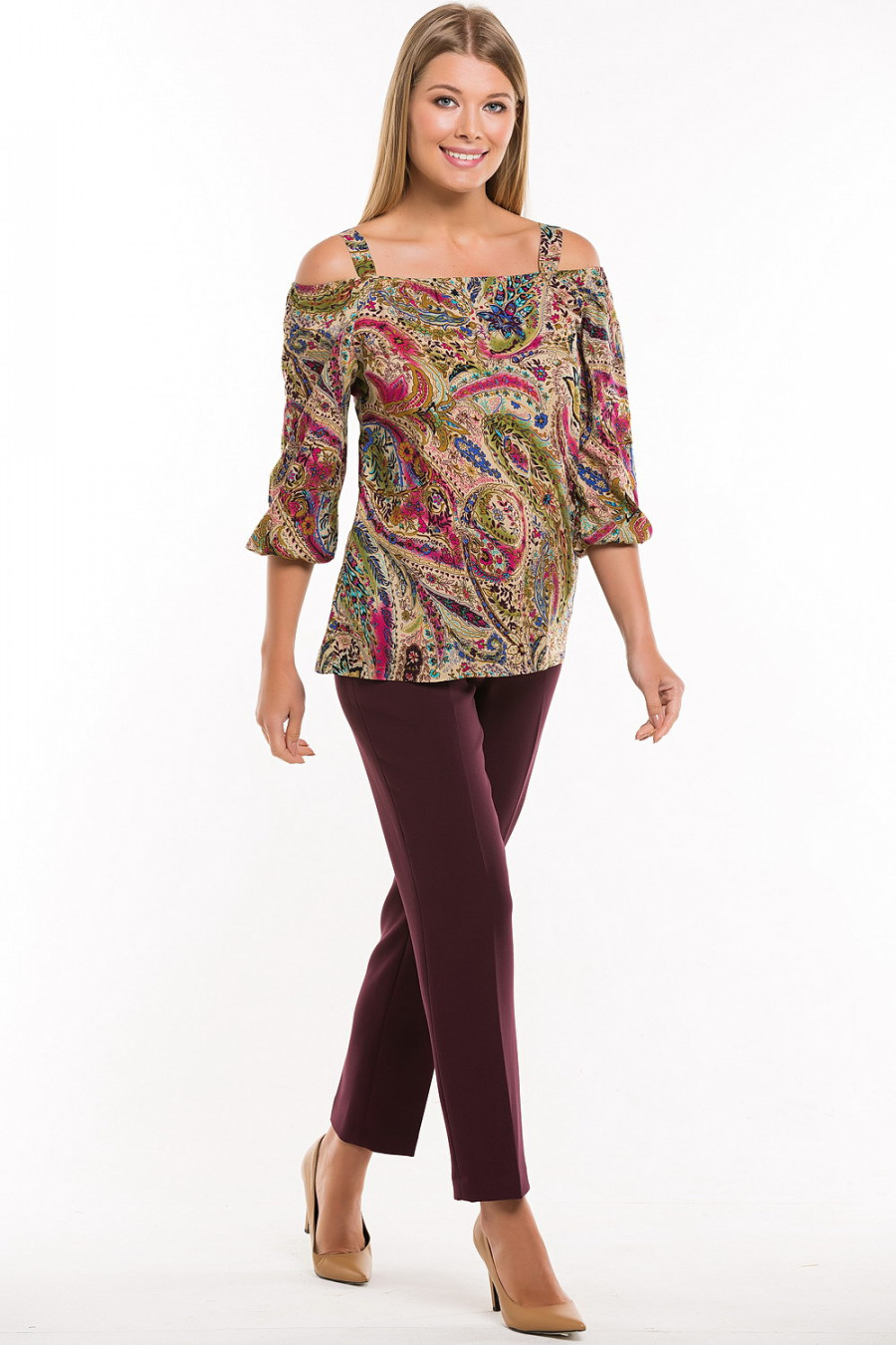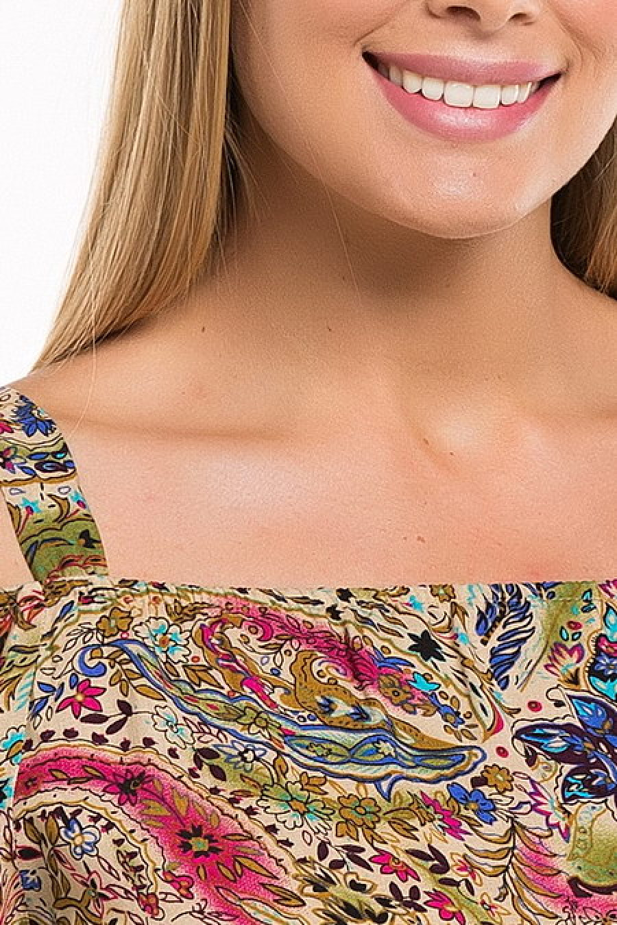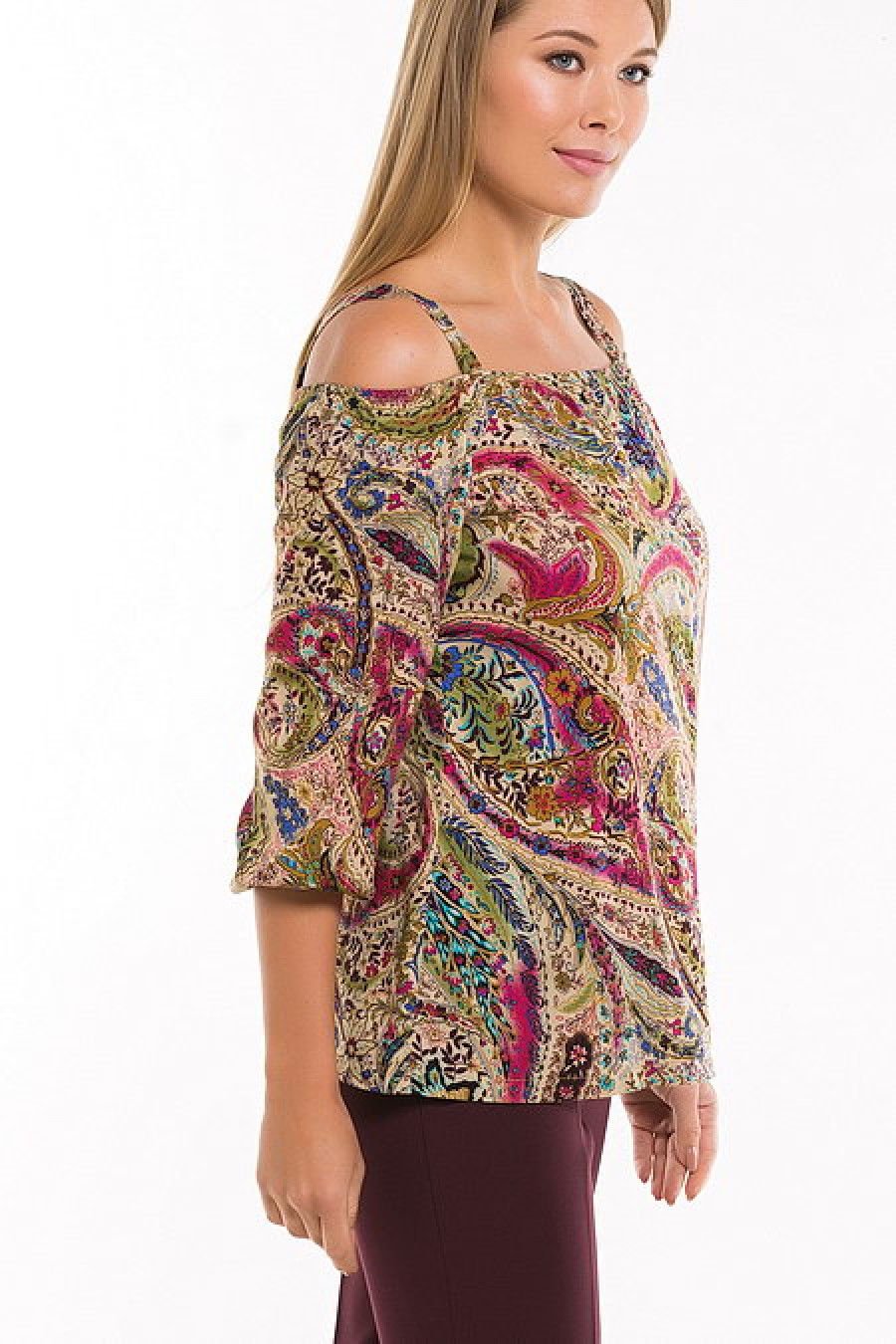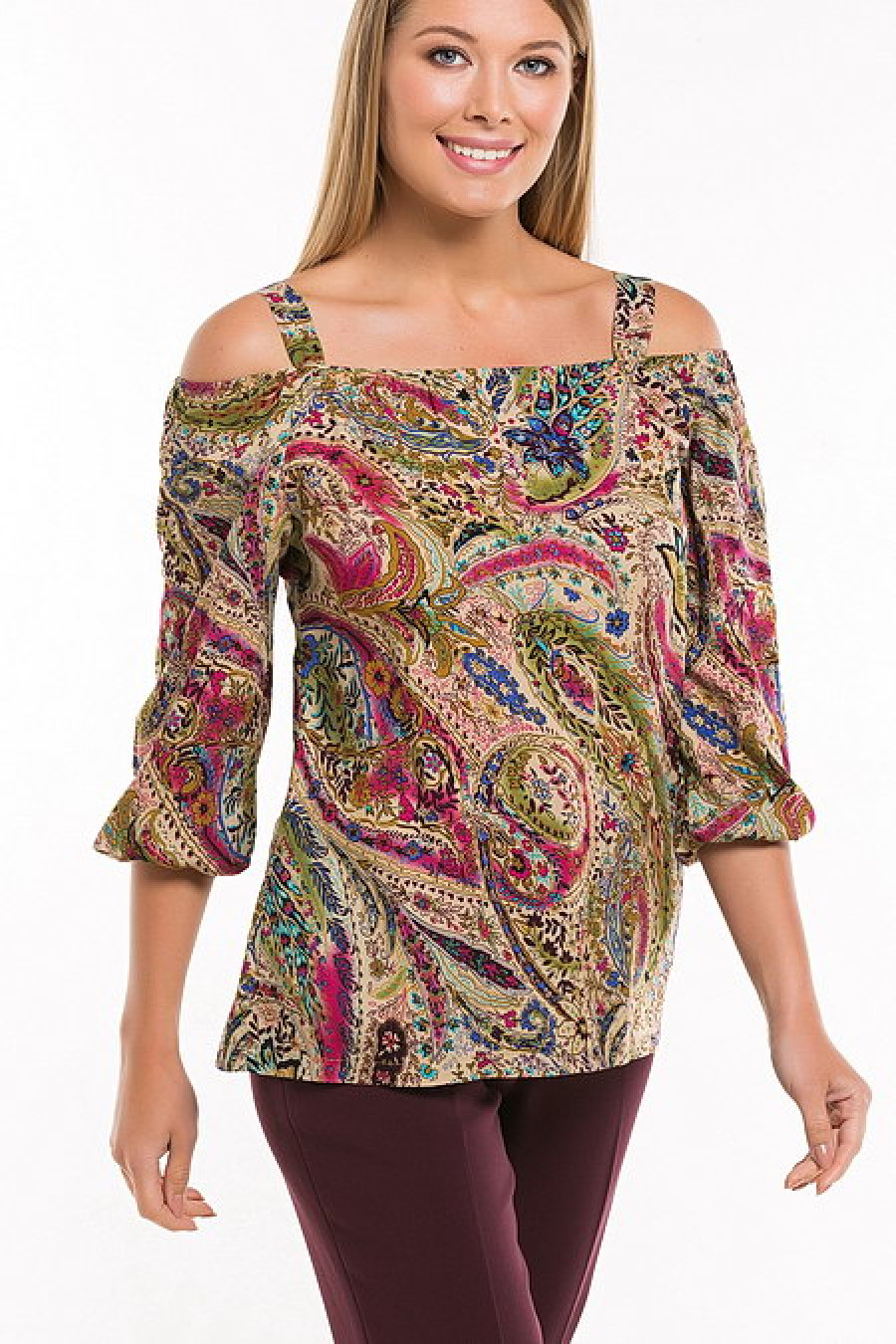 Повседневна стильная блуза в орнамент "огурец". Интересный дизайн рукава- комбинация из бретелей и присборенного рукава чуть ниже локтя.