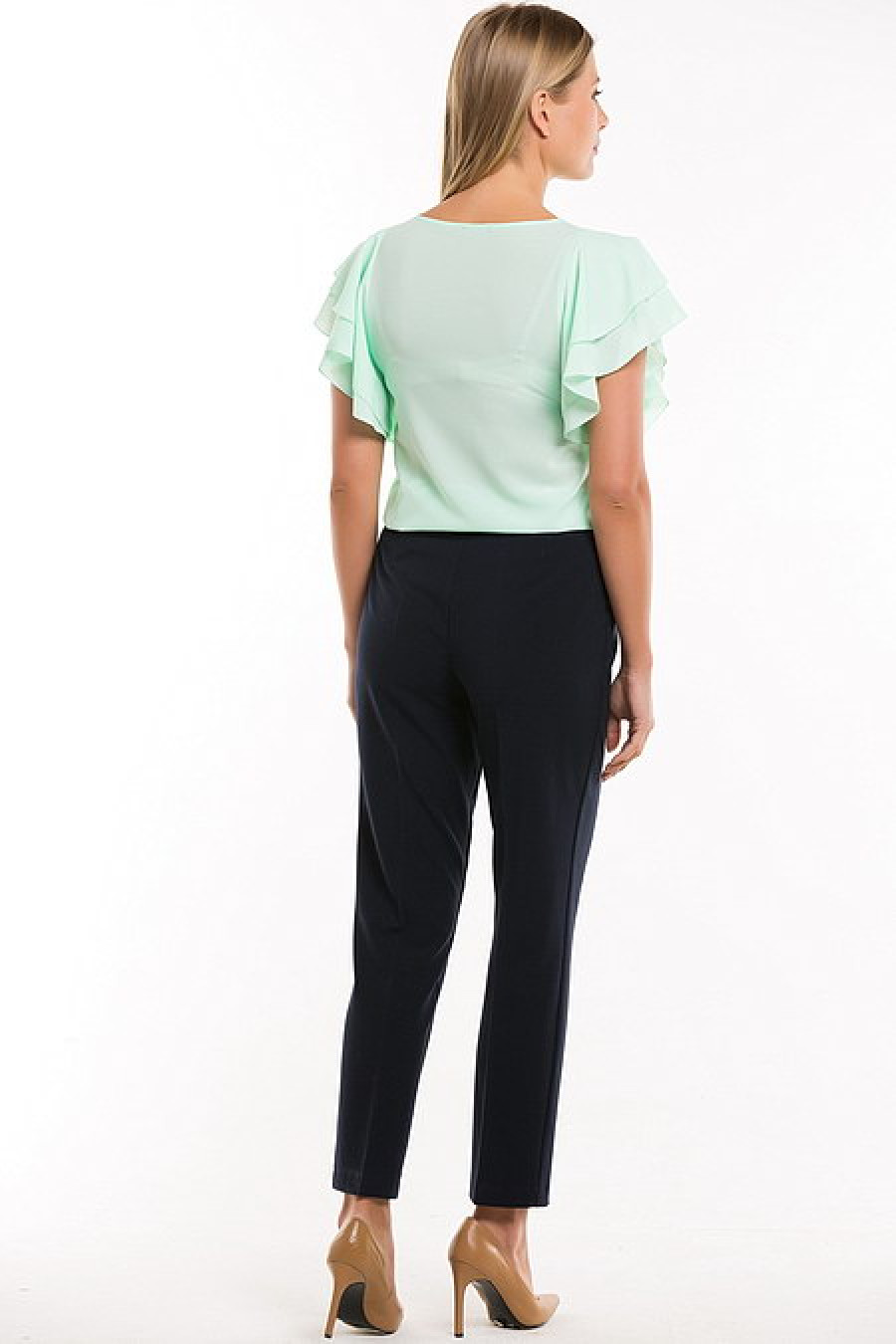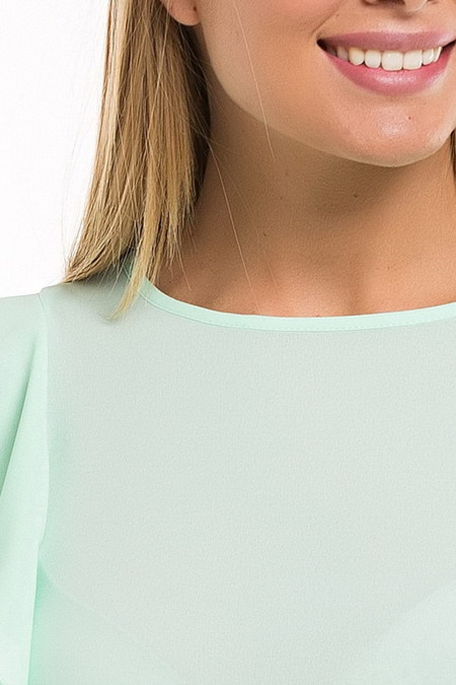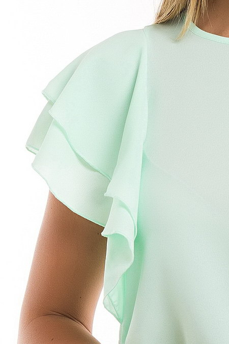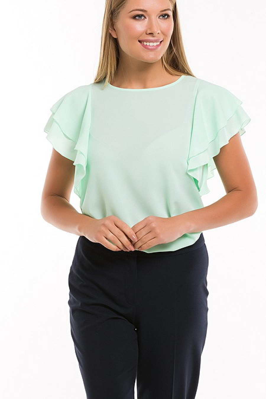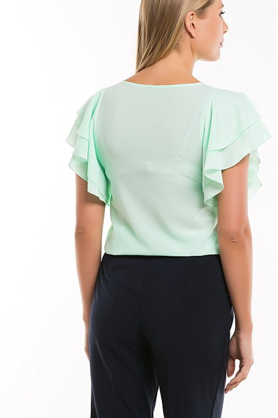 Элегантная блуза цвета мяты с рукавами-воланами. Ткань тонкая, чуть просвечивается.