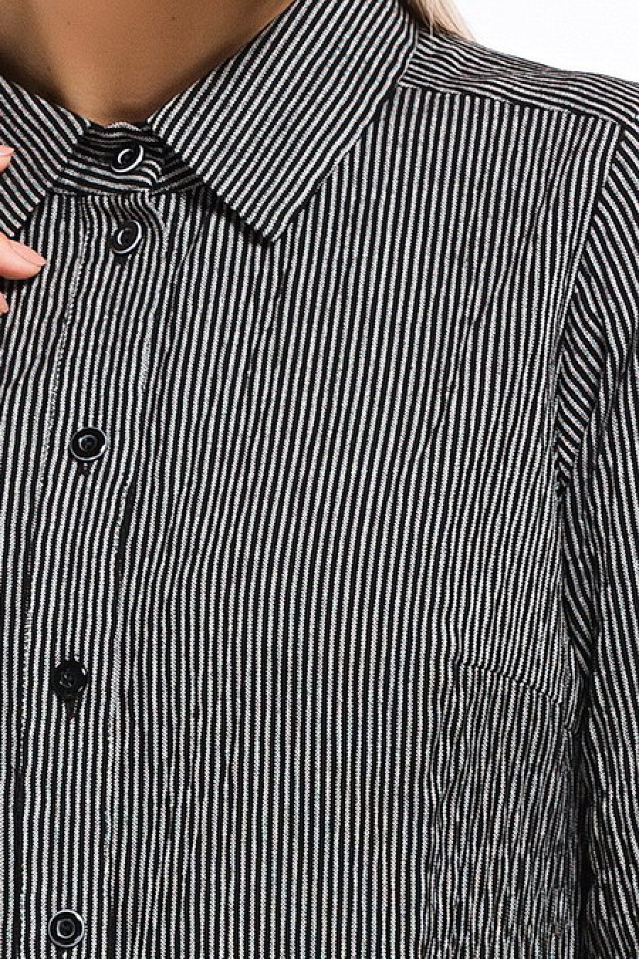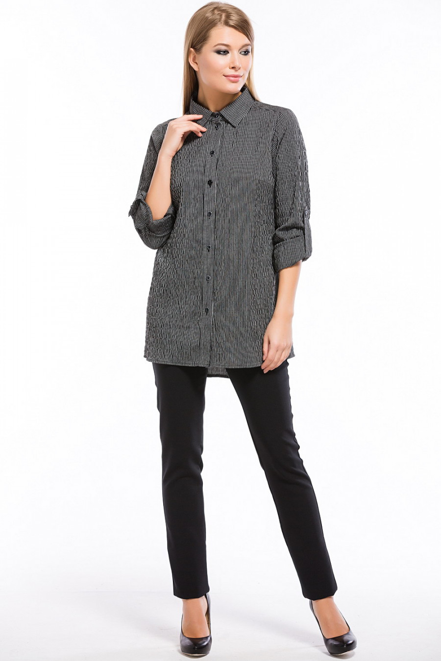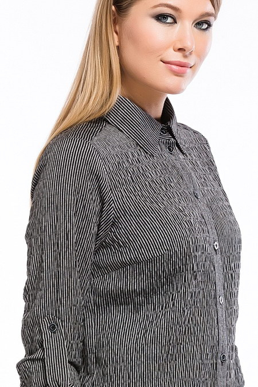 Рубашка на пуговицах с асимметричным подолом. Рукав можно подвернуть до длины 3/4 и зафиксировать предусмотренной для этого пуговицей. Воротник- стойка.