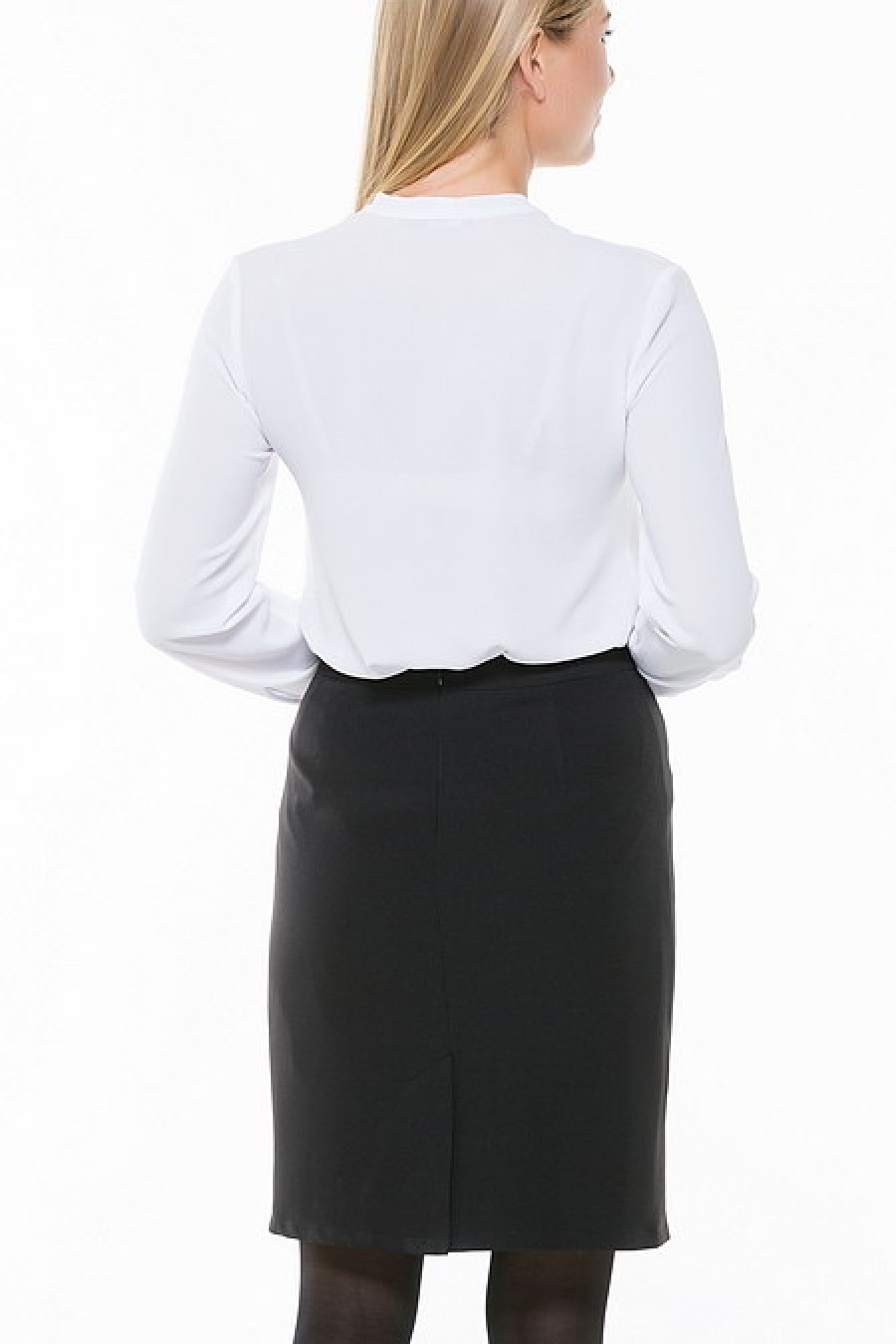 Деловая блуза с длинным рукавом, декорированная бантом.