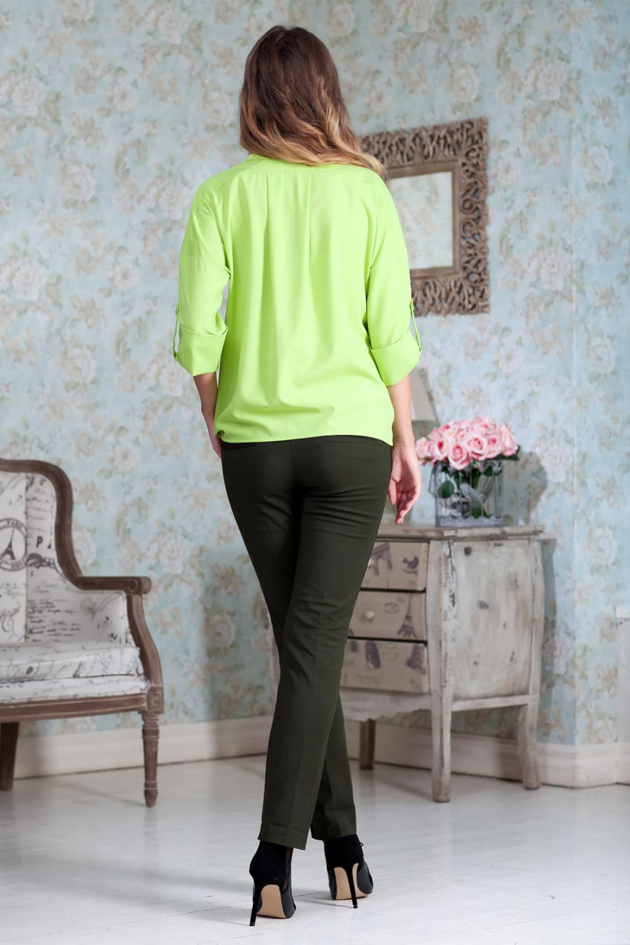 Стильная блузка свободного кроя с запахом впереди. V-образный вырез горловины оформлен аккуратным воротником со стойкой. Впереди выполнены оригинальные накладные карманы. Рукав 3/4 подворачивается и крепится пуговицей. Эффектная блузка не оставит незамече...