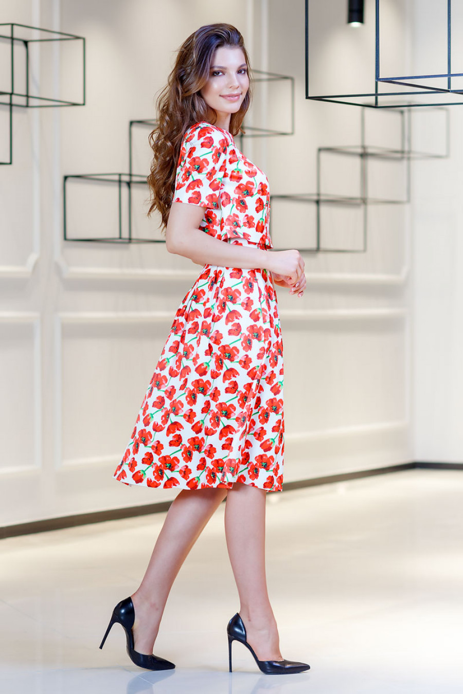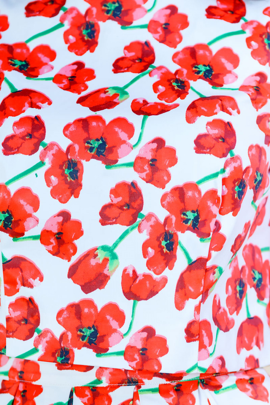 Стильная блуза из хлопка с ярким цветочным принтом. Модель длиной до талии с коротким рукавом. Сзади застежка на потайную молнию.
