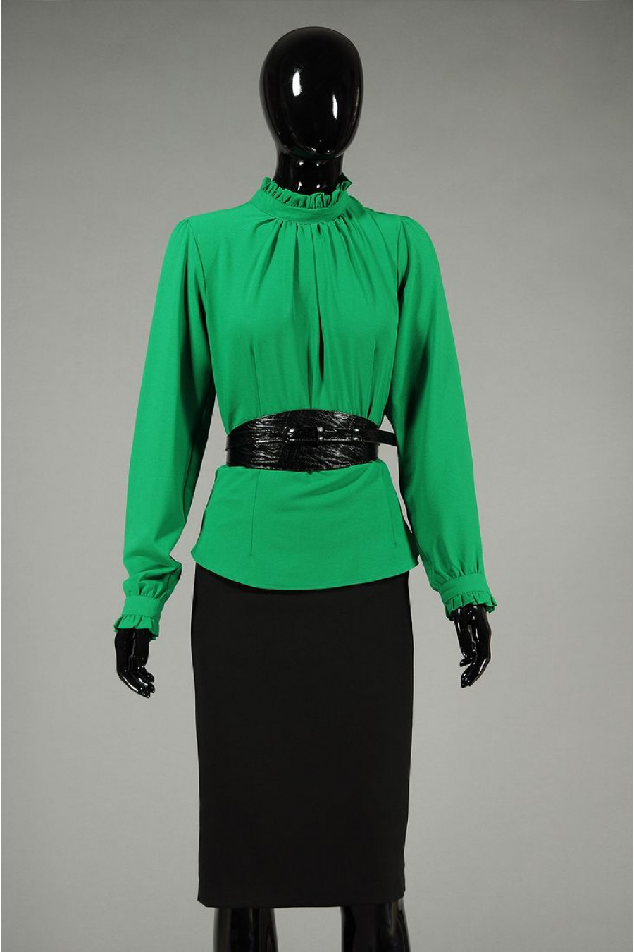 Классика и элегантность. Блузка - неотъемлемая часть гардероба любой женщины. Восхитительная модель из насыщенной ткани зелёного цвета. Приятный состав ткани. Выточки от линии груди. Приталенный силуэт. Длинный рукав. Интересно оформлен манжет рукава и воротник.