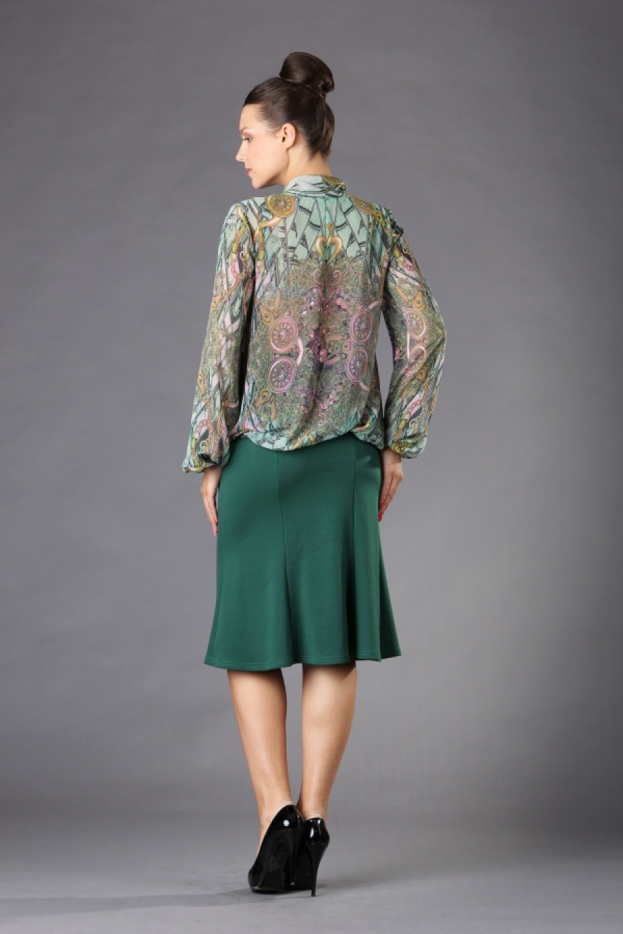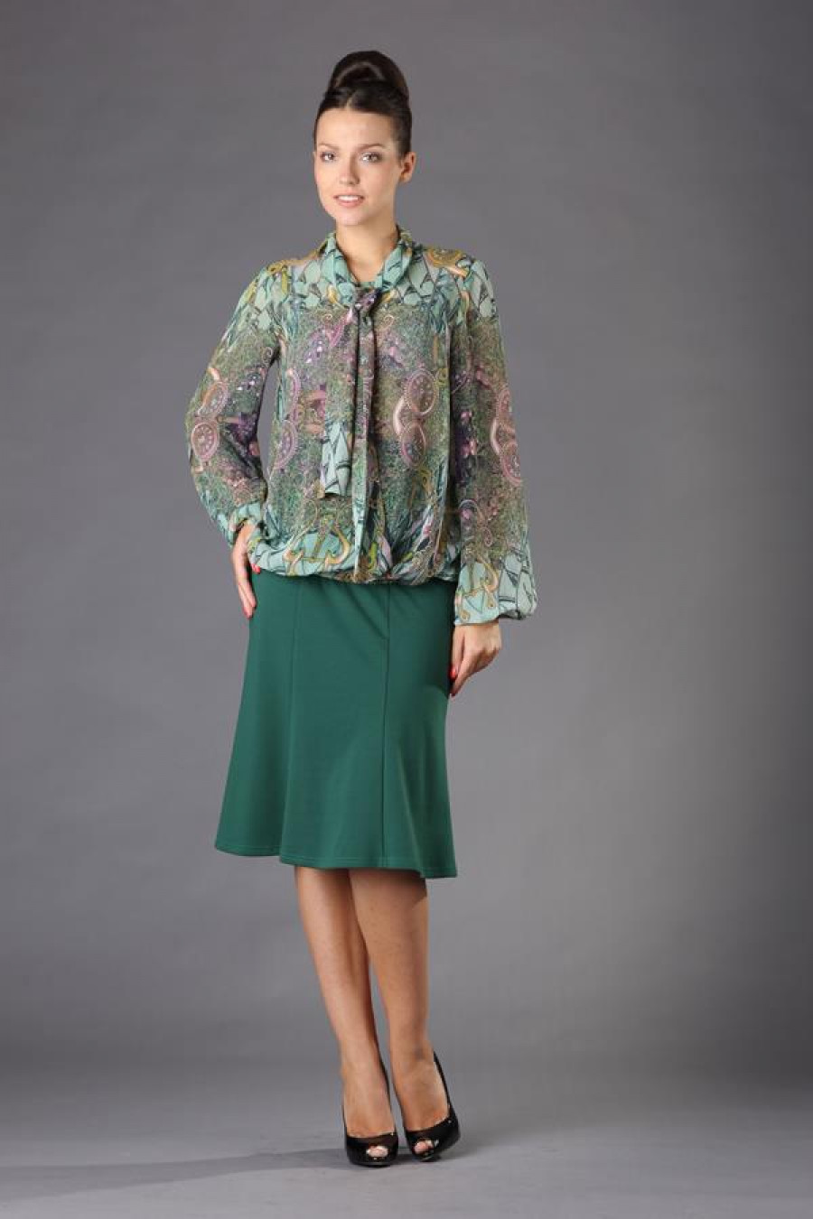 Воздушная блузка из тонкой шифоновой ткани подкупает изысканными деталями. Блузка с воротником, завязывающимся на бант, а низ рукавов и самой блузки собраны на резинку. О