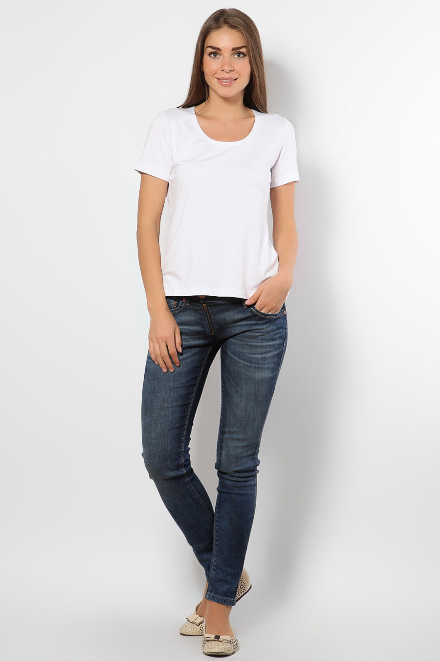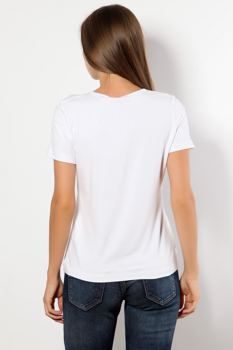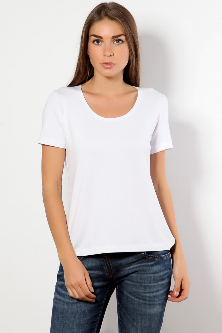 Футболка из мягкого шелковистого трикотажа полуприлегающего силуэта станет незаменимой вещью вашего гардероба. Модель с округлым вырезом горловины и короткими рукавами-отличный вариант для повседневного использования под пиджак,жакет ,кардиган.