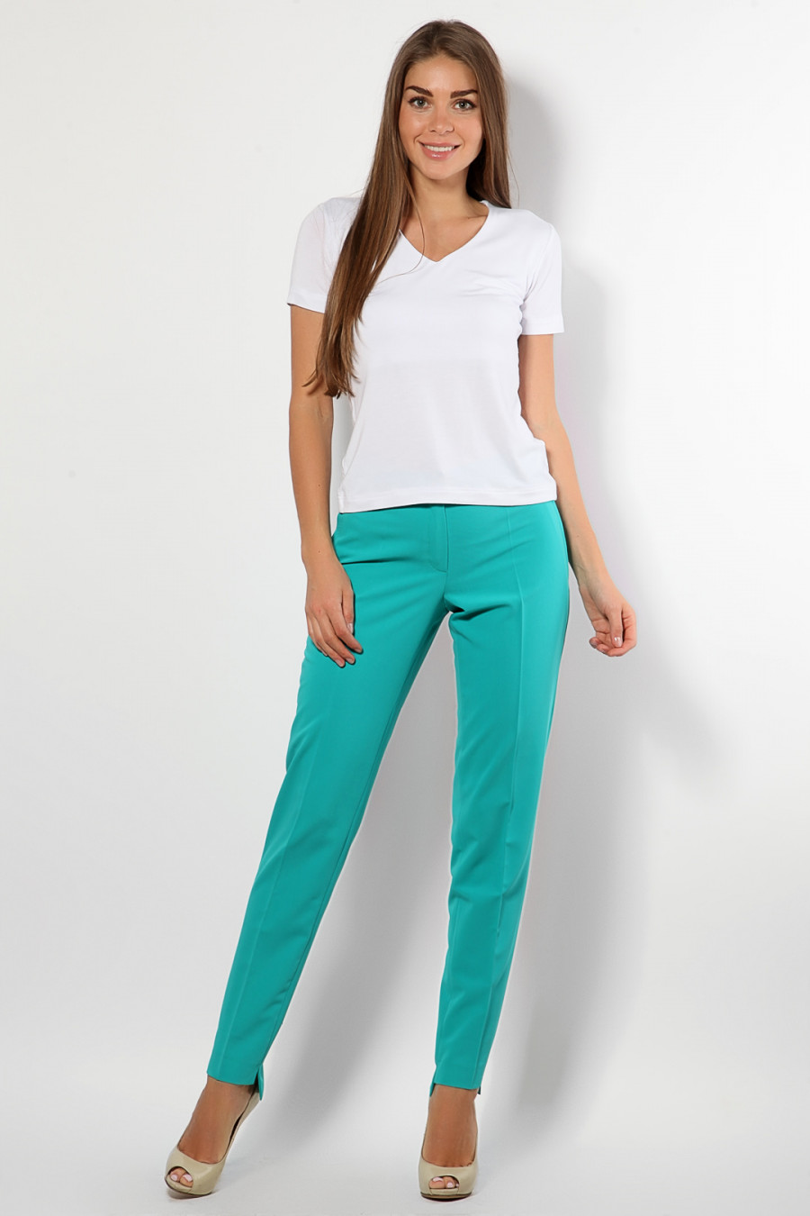 Однотонная футболка с коротким рукавом. Очень хорошего пошива. Вырез горловины представлен в виде капельки. Футболка данного фасона - это универсальный вариант под любой комплект одежды.