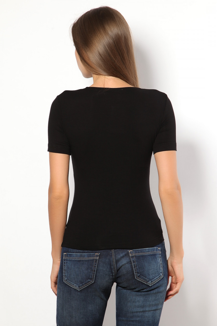 Футболка из мягкого шелковистого трикотажа полуприлегающего силуэта станет незаменимой вещью вашего гардероба. Модель с округлым вырезом горловины и короткими рукавами-отличный вариант для повседневного использования под пиджак,жакет ,кардиган.