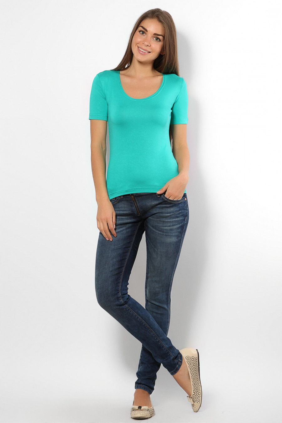 Футболка из мягкого шелковистого трикотажа полуприлегающего силуэта станет незаменимой вещью вашего гардероба. Модель с округлым вырезом горловины и короткими рукавами-отличный вариант для повседневного использования под пиджак,жакет ,кардиган.