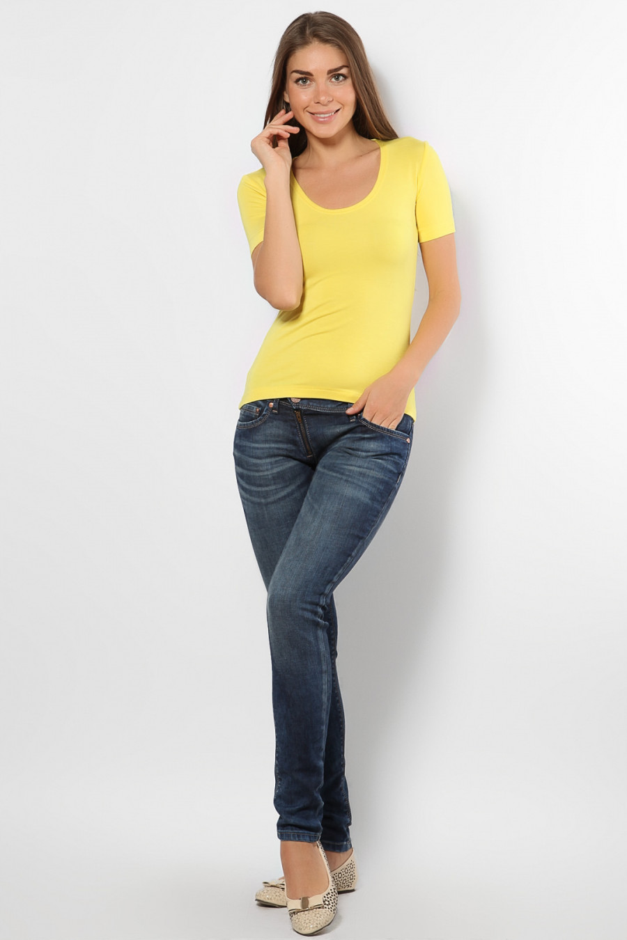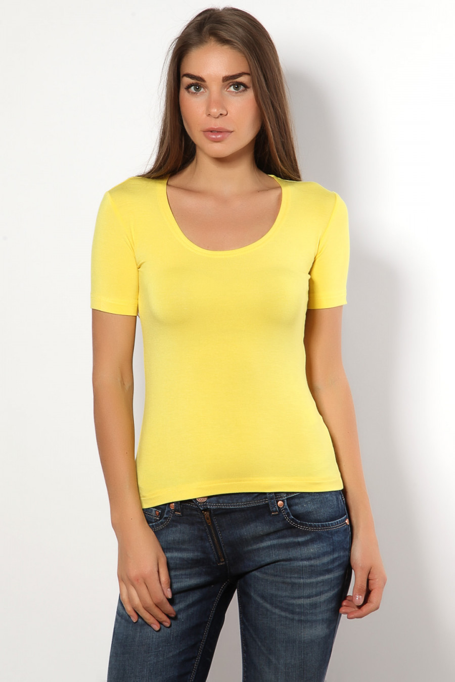 Футболка из мягкого шелковистого трикотажа полуприлегающего силуэта станет незаменимой вещью вашего гардероба. Модель с округлым вырезом горловины и короткими рукавами-отличный вариант для повседневного использования под пиджак,жакет ,кардиган.