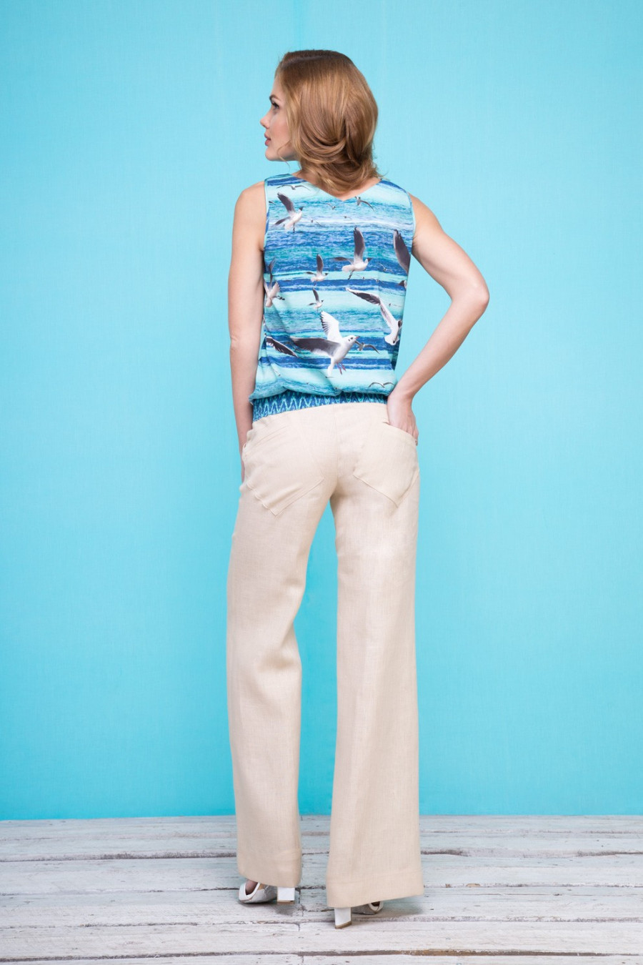 Топ женский, ArtRibbon, полуприлегающего силуэта. По переду топа застрочена декоративная складка. Низ топа обработан притачным поясом, который собран на эластичную нить в несколько рядов. Горловина обработана обтачками. Проймы окантованы