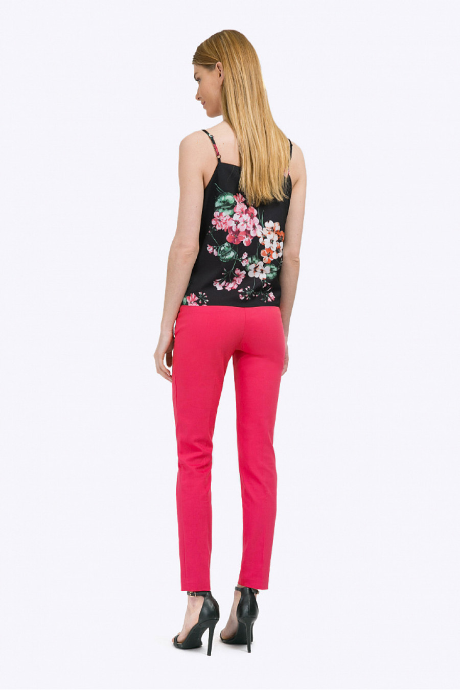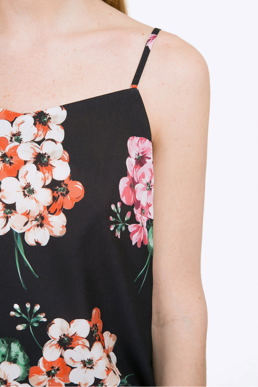 Чёрный открытый топ прямого силуэта на бретелях с сочным растительным орнаментом. Длина узких бретелек может быть отрегулирована. Модель выполнена из поливискозы с добавлением спандекса. Такое удачное сочетание обеспечивает вещи несминаемость, долговечность в носке и простоту в уходе. Образна фото дополнен брюками D090-cayenne . Рост фотомодели 175 см.